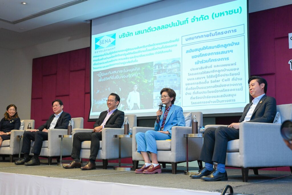 ทั้งนี้ ต้องขอขอบคุณโครงการดีๆ ที่ให้ความสำคัญกับการใช้พลังงานสะอาด เปิดโอกาสให้ทุกภาคส่วนได้มีส่วนร่วมในการดูแลสิ่งแวดล้อมอย่างจริงจัง ซึ่งสอดคล้องกับความมุ่งมั่นในการพัฒนาและคิดค้นนวัตกรรมใหม่ๆ ด้านการใช้พลังงานทดแทนที่ตอบโจทย์การใช้ชีวิตของลูกบ้านของเสนา รวมถึงเป้าหมายการลดคาร์บอนขององค์กร เช่น แนวคิดบ้านพลังงานเป็นศูนย์ (Zero Energy Housing) ที่สามารถประหยัดการใช้ไฟฟ้าของลูกบ้านได้สูงสุดถึง 38% และการส่งเสริม Decarbonized Lifestyle ให้ลูกบ้านสามารถใช้ชีวิตรักษ์โลกได้ง่ายๆ เพียงเลือกอยู่กับเสนา ปัจจุบันเสนาติดตั้งโซลาร์รูฟให้กับลูกบ้าน ทั้งบ้านเดี่ยวและทาวน์โฮมแล้วทั้งหมดทุกโครงการรวมกว่า 1,000 หลัง โดยในปีนี้ตั้งเป้าลดการปล่อยคาร์บอนได้ไม่ต่ำกว่า 19,800 ตันคาร์บอน หรือเทียบเท่ากับการปลูกต้นไม้มากกว่า 1,984,800 ต้นอีกด้วย