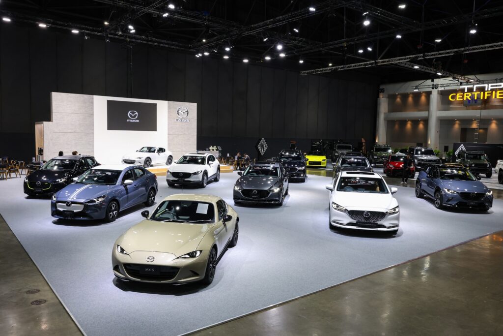 สำหรับไฮไลท์ของบูธมาสด้าในงานออโต้ซาลอน มาสด้าได้นำรถสปอร์ตโรดสเตอร์เปิดประทุน แบรนด์ไอคอนยอดนิยมที่ได้รับการพัฒนาปรับปรุงใหม่ New Mazda MX-5 รุ่นเกียร์ธรรมดา สีเทาแอโร เกรย์ ที่มาพร้อม DSC-TRACK ซึ่งเป็นระบบควบคุมเสถียรภาพและการทรงตัวของรถ (Dynamic Stability Control: DSC) ใหม่ เพื่อช่วยให้ผู้ขับขี่ควบคุมรถได้เหมือนกับการขับรถแข่งในสนามแข่งมาจัดแสดงให้ลูกค้าและแฟนรถสปอร์ตรุ่นนี้ได้ยลโฉมและรับข้อเสนอพิเศษให้กับผู้ที่สนใจ ราคาจำหน่าย 3,029,000 บาท ดอกเบี้ย 2.49%1 ฟรีประกันภัยชั้นหนึ่ง Mazda Premium Insurance 1 ปี2 ฟรีโปรแกรมคุ้มครองและดูแลรถ 5 ปี Mazda Ultimate Service3 ขยายการรับประกันคุณภาพเป็น 5 ปี ฟรีค่าบำรุงรักษาตามระยะ 5 ปี และบริการช่วยเหลือฉุกเฉิน 24 ชั่วโมง 5 ปี