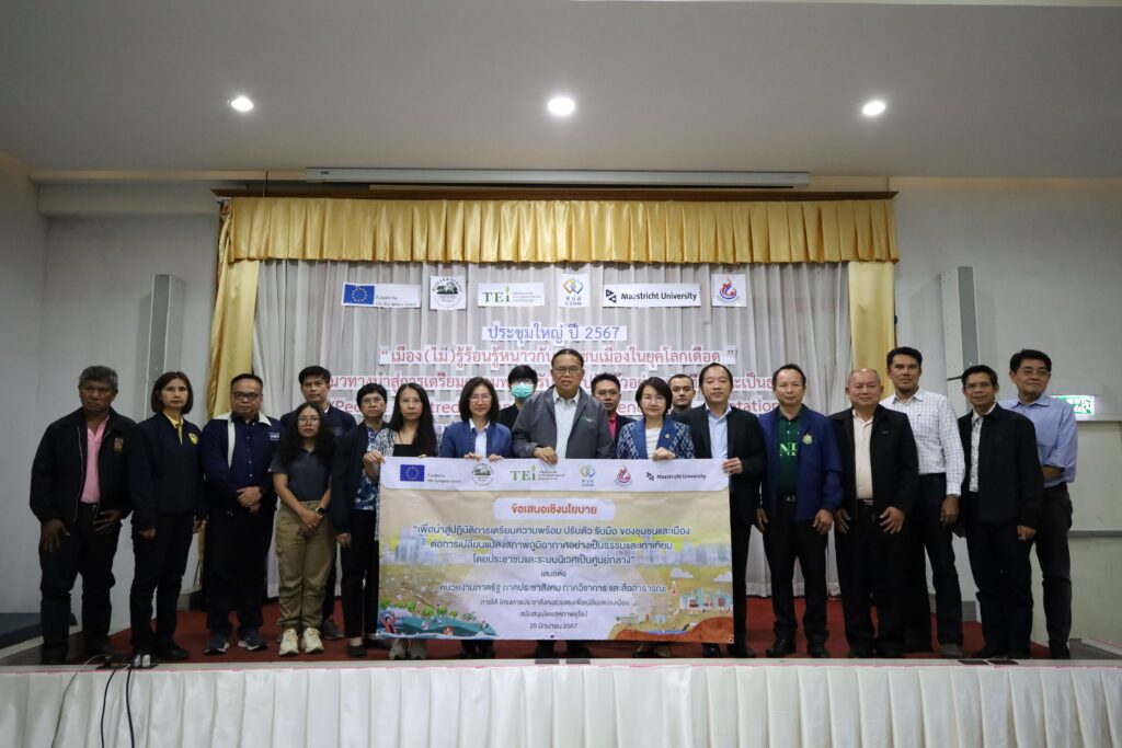 สถาบันสิ่งแวดล้อมไทย หรือ TEI ตอกย้ำการเป็นองค์กรชั้นนำด้านสิ่งแวดล้อมที่ทำงานร่วมกับภาคีเครือข่าย ทั้งภาครัฐ เอกชน ภาคประชาสังคม โดยปิดเวทีการประชุมครั้งใหญ่ “เมือง(ไม่)รู้ร้อนรู้หนาว กับ ชุนชนเมือง ในยุคโลกเดือด” แนวทางนำสู่ การเตรียมความพร้อม รับมือ ปรับตัว อย่างเท่าเทียมและเป็นธรรม (People-centred urban climate resilience and adaptation) ของโครงการประชาสังคมร่วมแรงเพื่อเปลี่ยนแปลงเมือง (SUCCESS) สนับสนุนโดยสหภาพยุโรป ที่จัดขึ้นเมื่อวันที่ 25และ27 มิถุนายนที่ผ่านมา ณ จังหวัดขอนแก่น