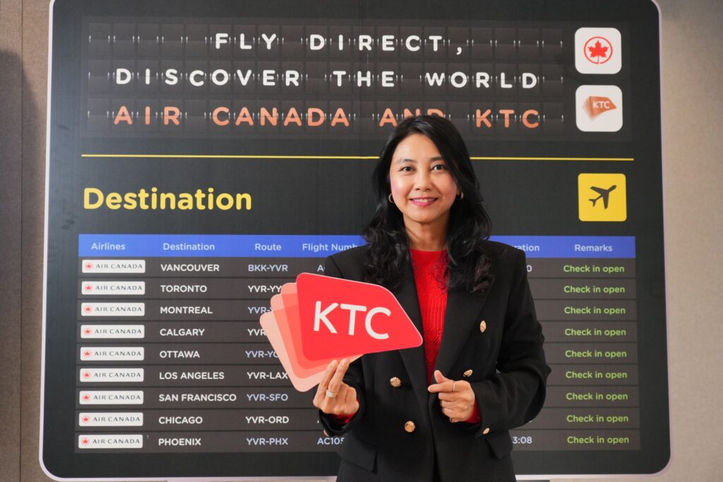 นางสาวพัทธ์ธีรา อนันต์โชติพัชร ผู้บริหาร KTC World Travel Service และการตลาดหมวดสายการบิน “เคทีซี” หรือ บริษัท บัตรกรุงไทย จำกัด (มหาชน) กล่าวว่า เคทีซีดำเนินธุรกิจบนแนวคิดด้านความยั่งยืนโดยคำนึงถึงทั้งมิติสิ่งแวดล้อม สังคม และธรรมาภิบาล และได้ร่วมมือกับพันธมิตรทั้งภาครัฐและเอกชนในการดำเนินธุรกิจ นอกจากนี้ยังร่วมส่งเสริมกิจกรรมอนุรักษ์สิ่งแวดล้อมอย่างยั่งยืนของพันธมิตรหมวดสายการบินผ่านกิจกรรมการตลาดอย่างต่อเนื่อง เคทีซีจึงได้ร่วมวางแผนกับสายการบินแอร์แคนาดาในหลายรูปแบบเพื่อให้สมาชิกได้สัมผัสประสบการณ์การบินตรงสู่แวนคูเวอร์ได้สะดวก และเดินทางได้อย่างคุ้มค่ามากขึ้นด้วยข้อเสนอการแบ่งชำระ 0% นานสูงสุด 6 เดือนผ่านช่องทาง KTC World Travel Service และได้จับมือร่วมกับบริษัทตัวแทนท่องเที่ยวอีก 5 ราย ได้แก่ บริษัท โกลเบิล ยูเนี่ยน เอกซ์เพรส จำกัด  (G.U.E.) / มาแจ๊สติก ทราเวล (Majestic Travel ) / ควอลิตี้ เอ็กซ์เพรส  (Quality Express) / ยูนิไทย (Unithai) / บริษัท เวิลด์  เอ็กซ์พลอเรอร์  (World Explorer) และ ทราเวลโลก้า* (Traveloka) (*เป็นไปตามเงื่อนไขที่กำหนด) หรือ เลือกรับคะแนน KTC FOREVER เพิ่ม 10,000 คะแนน เมื่อจองตั๋วเครื่องบินและชำระเต็มจำนวนผ่าน KTC World Travel Service เท่านั้น (สิทธิ์มีจำนวนจำกัด) สามารถจองได้ตั้งแต่วันที่ 1 พฤศจิกายน 2567 – วันที่ 15 พฤษภาคม 2568 และเดินทาง 2 พฤศจิกายน 2567  – วันที่ 31 พฤษภาคม 2568