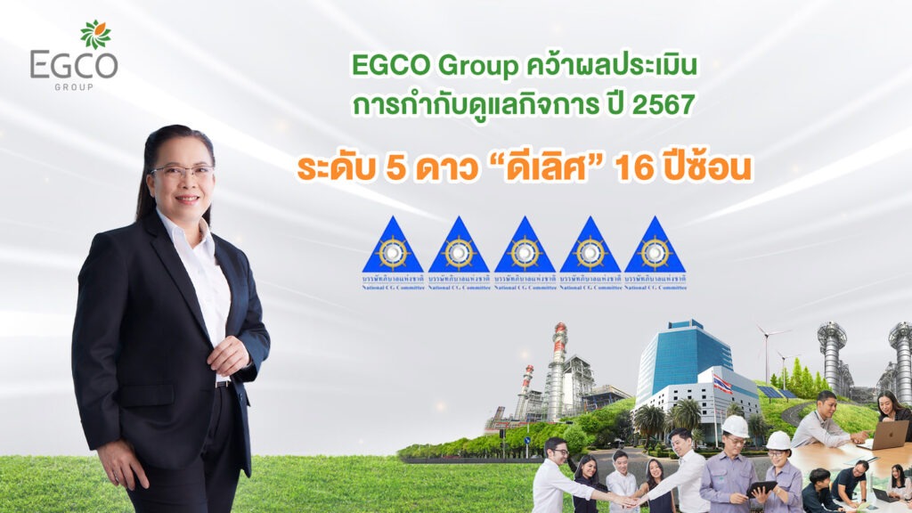บริษัท ผลิตไฟฟ้า จำกัด (มหาชน) หรือ EGCO Group ได้รับคะแนนประเมินจากโครงการสำรวจการกำกับดูแลกิจการบริษัทจดทะเบียนไทย ประจำปี 2567 (CGR 2024) ระดับ 5 ดาว หรือ “ดีเลิศ” ต่อเนื่องเป็นปีที่ 16 ในกลุ่มอุตสาหกรรมทรัพยากร ที่มีมูลค่าหลักทรัพย์ตามราคาตลาดมากกว่า 10,000 ล้านบาท โดยมีคะแนนเฉลี่ยรวม 103 คะแนน สูงกว่าคะแนนเฉลี่ยของบริษัทจดทะเบียนโดยรวมซึ่งอยู่ที่ 84 คะแนน ตอกย้ำความมั่นใจนักลงทุนต่อการเป็นบริษัทจดทะเบียนชั้นนำในตลาดหลักทรัพย์แห่งประเทศไทย ที่ให้ความสำคัญต่อการกำกับดูแลกิจการที่ดีและบูรณาการเรื่องความยั่งยืนทั้งในมิติเศรษฐกิจ สังคม และสิ่งแวดล้อม (ESG) ให้อยู่ในกระบวนการการทำงานและสอดคล้องกับเป้าหมายการพัฒนาที่ยั่งยืน (SDGs) ขององค์การสหประชาชาติ
