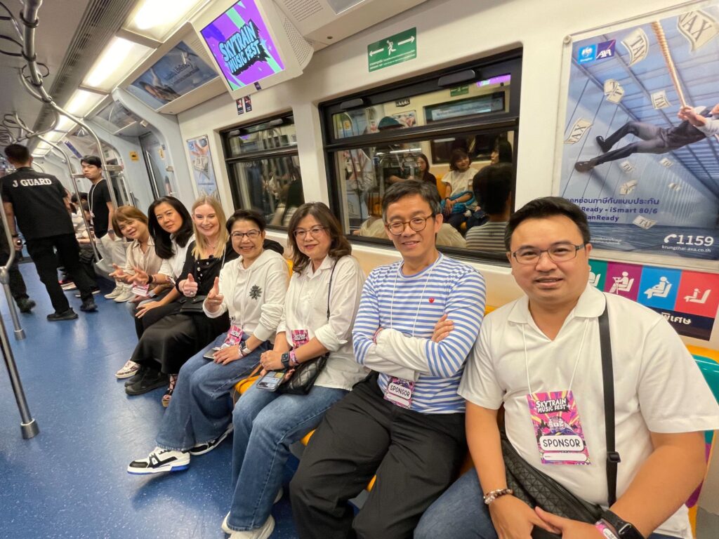 กรุงไทย-แอกซ่า ประกันชีวิต นำโดย คุณแซลลี่ โอฮาร่า ประธานเจ้าหน้าที่บริหาร บริษัท แอกซ่า ในภูมิภาคเอเชียอาคเนย์ และประเทศเกาหลีใต้ (คนที่ 2 จากซ้าย) และคุณบุปผาวดี โอวรารินท์ ประธานเจ้าหน้าที่บริหาร ฝ่ายทรัพยากรมนุษย์และภาพลักษณ์องค์กรและการสื่อสารองค์กร (คนที่ 2 จากขวา) พร้อมคณะผู้บริหารระดับสูง จับมือร่วมกับพันธมิตร VGI , BTS , Goodthings Happen , Zaap Word Entertainment, XOXO Entertainment , LOVEiS ENTERTAINMENT , Warner MusicThailand , Boxx Music และ What The Duck Music และผู้สนับสนุน ยกระดับวัฒนธรรมดนตรีผ่านกิจกรรม ‘SkyTrain Music Fest’ พลิกโฉมขบวนรถไฟฟ้าเป็นคอนเสิร์ตรูปแบบใหม่ครั้งแรกในประเทศไทย ดึงศิลปิน T-Pop ชั้นนำ อาทิ นนท์-ธนนท์, 4EVE, ATLAS, Bowkylion และศิลปินอื่นๆอีกมากมาย มาร่วมสร้างเสียงเพลงบนขบวน BTS เพื่อมอบประสบการณ์ที่สอดคล้องกับไลฟ์สไตล์อันหลากหลายของลูกค้าที่ไม่เหมือนใคร