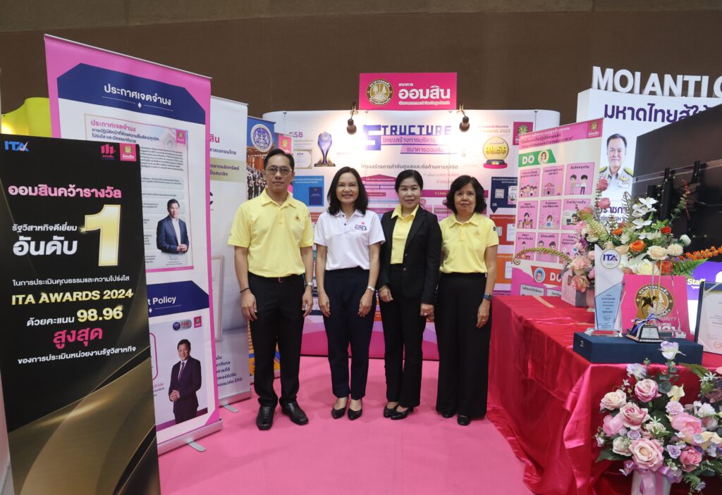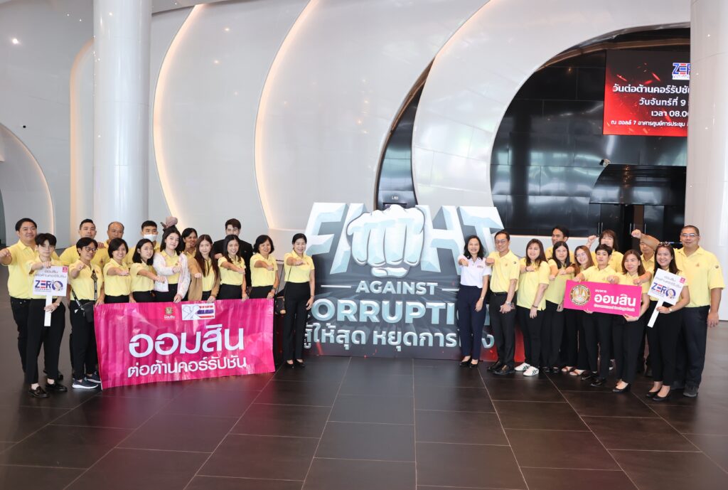 นางสมพรรษ เพ็งจันทร์ ผู้ช่วยผู้อำนวยการธนาคารออมสิน สายงานกำกับและควบคุม พร้อมด้วยคณะผู้บริหาร พนักงาน และลูกจ้าง ร่วมแสดงพลังต่อต้านการทุจริตคอร์รัปชันในงานวันต่อต้านคอร์รัปชันสากล (ประเทศไทย) ประจำปี 2567 ภายใต้แนวคิด FIGHT AGAINST CORRUPTION สู้ให้สุด หยุดการโกง โดยมีนายชูศักดิ์ ศิรินิล รัฐมนตรีประจำสำนักนายกรัฐมนตรี เป็นประธานในพิธีประกาศเจตจำนงในการต่อต้านการทุจริต ซึ่งรัฐบาล ร่วมกับสำนักงาน ป.ป.ช. สำนักงาน ป.ป.ท. องค์กรต่อต้านคอร์รัปชัน (ประเทศไทย) และภาคีเครือข่ายจัดขึ้น เพื่อเชิญชวนให้ประชาชนร่วมกันตระหนักถึงความสำคัญของการต่อต้านการทุจริตคอร์รัปชัน เพื่อปกป้องและรักษาผลประโยชน์ของประเทศจากการทุจริตคอร์รัปชันในทุกรูปแบบ ณ อาคารศูนย์การประชุม อิมแพ็ค เมืองทองธานี จ.นนทบุรี เมื่อวันที่ 9 ธันวาคม 2567