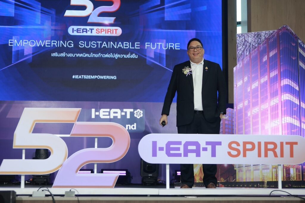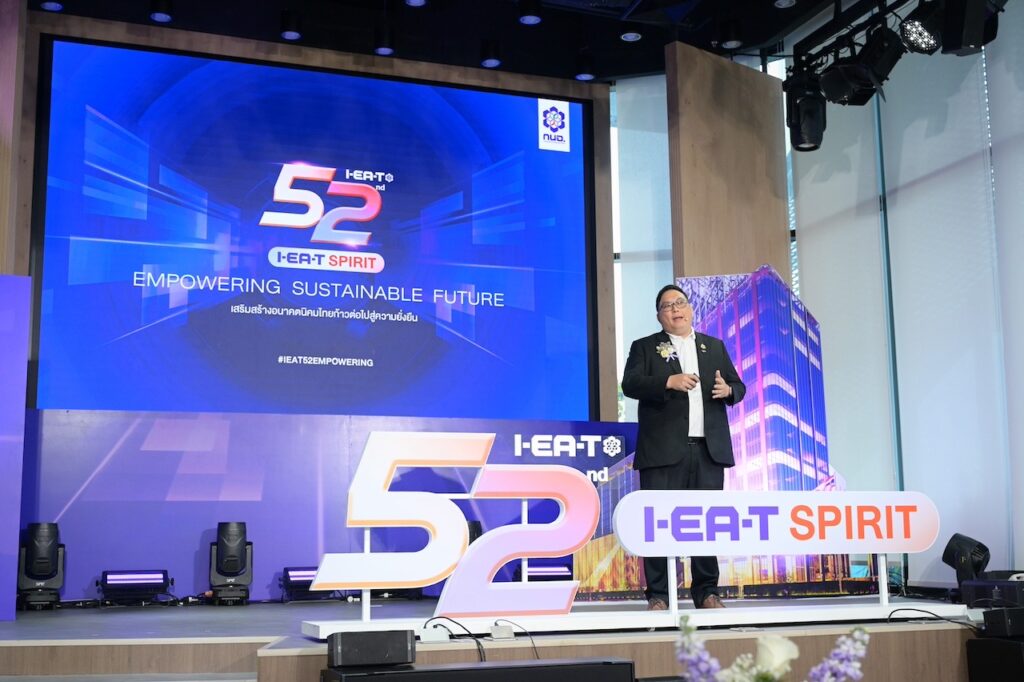 จากนั้นนายสุเมธ ตั้งประเสริฐ กรรมการ การนิคมอุตสาหกรรมแห่งประเทศไทย (กนอ.) รักษาการในตำแหน่ง ผู้ว่าการ กนอ. ได้แถลงถึงทิศทางการดำเนินงานและเป้าหมายของ กนอ. ในอนาคต โดยระบุว่า เป้าหมายการดำเนินงานของ กนอ.ภายใต้แนวคิด “52nd I-EA-T SPIRIT: EMPOWERING SUSTAINABLE FUTURE เสริมสร้างอนาคตนิคมไทย ก้าวต่อไป สู่ความยั่งยืน” มุ่งเน้นการพัฒนาอุตสาหกรรมอย่างยั่งยืน โดยส่งเสริมการอยู่ร่วมกันอย่างยั่งยืนระหว่างภาคอุตสาหกรรมและชุมชน ลดผลกระทบต่อสิ่งแวดล้อม โดยการลดการปล่อยก๊าซเรือนกระจก (Greenhouse Gases : GHGs) โดยในปี 2568 ตั้งเป้าลดการปล่อย GHGs ในภาพรวมอย่างน้อย 2,500,000 kg CO2e รวมทั้งส่งเสริมพลังงานทางเลือก และมุ่งสู่เป้าหมาย Carbon Neutralitb และยกระดับโรงงานให้ได้มาตรฐานอุตสาหกรรมสีเขียว 100% ขณะเดียวกันยังมุ่งมั่นพัฒนาองค์กรในเกณฑ์มาตรฐานต่างๆ เช่น ECO 5 มิติ, SMART ECO 4.0, ISO 14001 เพื่อยกระดับนิคมอุตสาหกรรมเชิงนิเวศ นอกจากนี้ยังมีการจัดทำแผนงาน Roadmap ของ กนอ. ในการพัฒนาที่ยั่งยืนในระยะยาว โดยมีเป้าหมาย การเข้าถึงน้ำสะอาด พลังงานสะอาด การจ้างงานที่ดี การผลิตและการบริโภคที่ยั่งยืน การรับมือกับการเปลี่ยนแปลงสภาพภูมิอากาศ