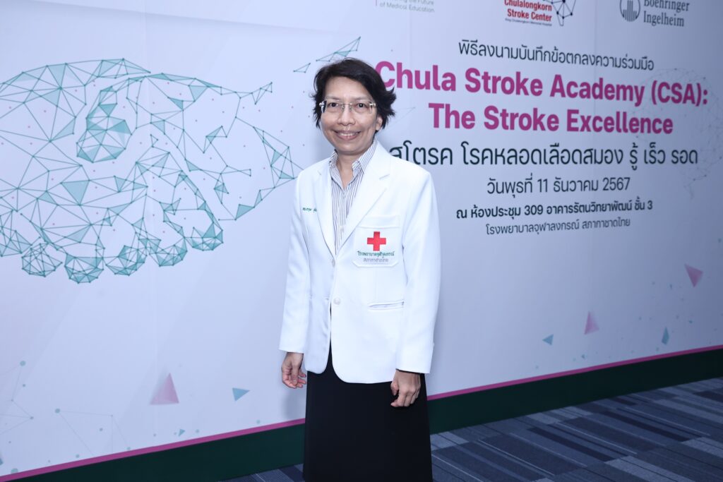 รศ.(พิเศษ) พญ.อรอุมา ชุติเนตร หัวหน้าศูนย์ความเป็นเลิศทางการแพทย์ ด้านโรคหลอดเลือดสมองแบบครบวงจร โรงพยาบาลจุฬาลงกรณ์ สภากาชาดไทย เผยเพิ่มเติมว่า “เราได้ออกแบบหลักสูตรภายใต้โครงการ ‘Chula Stroke Academy: The Stroke Excellence สโตรค โรคหลอดเลือดสมอง รู้ เร็ว รอด’ ให้ครบคลุมเนื้อหาเกี่ยวกับโรคหลอดเลือดสมองในทุกแง่มุม ตั้งแต่การสร้างการตระหนักในผู้ป่วยเกี่ยวกับสัญญาณ และอาการของโรคหลอดเลือดสมอง ไปจนถึงวิธีการรักษาที่มีประสิทธิภาพ รวมถึงการพัฒนาระบบดูแลผู้ป่วยให้มีประสิทธิภาพสูงสุด เราหวังว่าโครงการฯ นี้จะเป็นส่วนหนึ่งที่จะช่วยให้บุคคลกรทางการแพทย์ได้เรียนรู้โรคหลอดเลือดสมองได้ง่าย และรับมือกับผู้ป่วยโรคนี้ได้ไวอย่างมีประสิทธิภาพ”