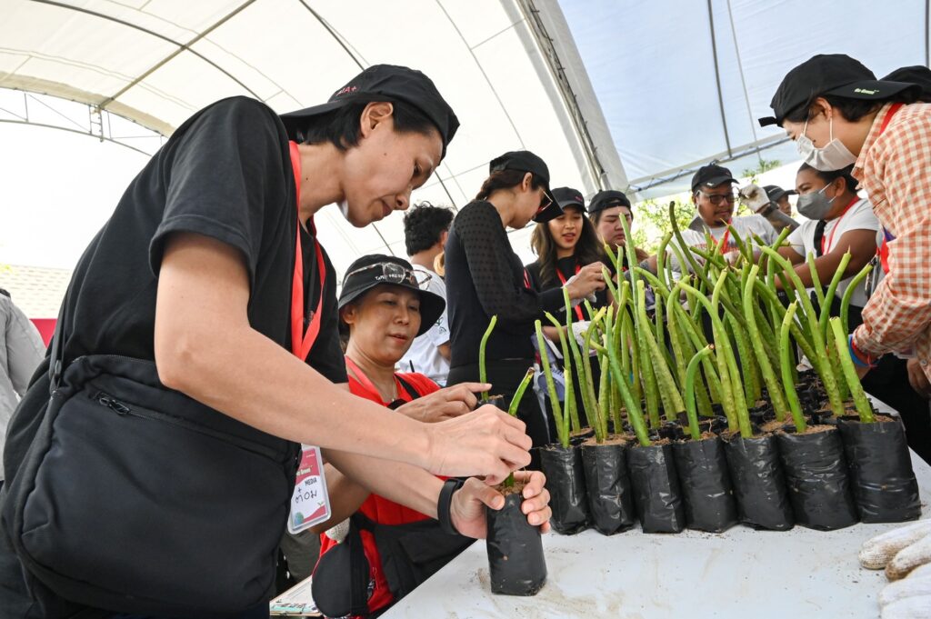 นอกจากนี้ คุณอเล็กซ์ ยังได้สาธิตวิธีปลูกต้นไม้ในพื้นที่จำกัดสไตล์คนเมือง พร้อมชวนผู้ร่วมกิจกรรมปลูกผักสวนครัวไว้รับประทานเอง อาทิ ผักกาด ต้นอ่อนทานตะวัน บรอกโคลี หัวไชเท้า และโต้วเหมี่ยว เพื่อเป็นการตอกย้ำว่าการปลูกป่าในเมืองนั้นเป็นเรื่องใกล้ตัวและทำได้ไม่ยาก