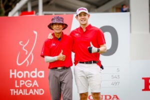 คุณธีรพงษ์ พัชรวาณิชสกุล ลูกค้าเจ้าของรถยนต์ ฮอนด้า ซีวิค ที่ชวนเพื่อนซี้มาร่วมกิจกรรม กล่าวว่า “รู้สึกตื่นเต้นมากที่ได้ตามรอยโปรในวันนี้ ได้ตีหมุดและหลุมเดียวกัน ถือเป็นพริวิเลจมากๆ ที่ฮอนด้าเป็นสปอนเซอร์การแข่งขัน ฮอนด้า แอลพีจีเอ ไทยแลนด์ กิจกรรมดีๆ แบบนี้ อยากให้จัดต่อเนื่องทุกปีเลยครับ ปกติผมเป็นคนชอบตีกอล์ฟ ก็จะใช้ ฮอนด้า