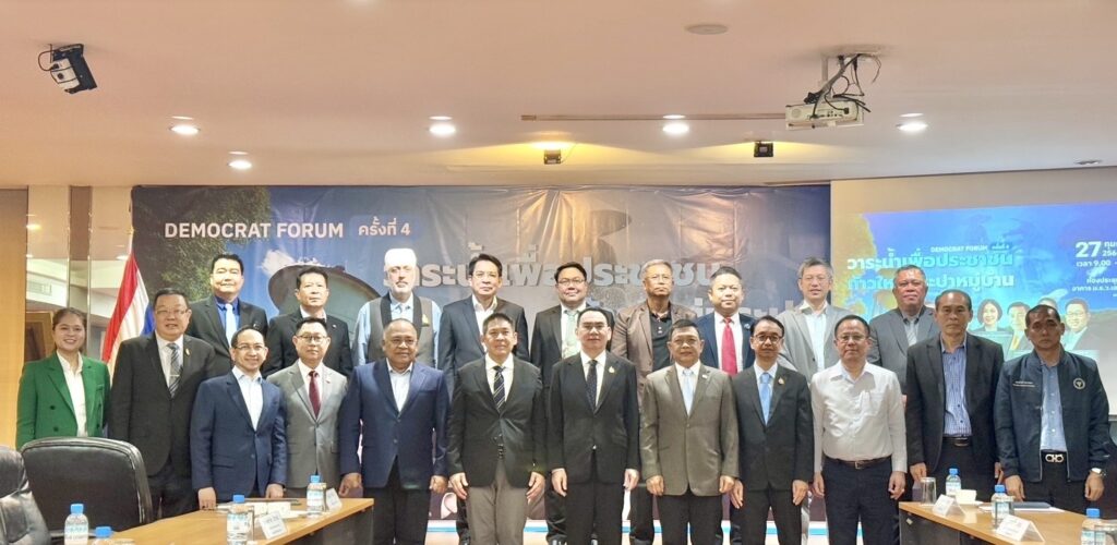 พรรคประชาธิปัตย์ ได้จัดสัมมนา เดโมแครต ฟอรั่ม ครั้งที่ 4 “วาระน้ำเพื่อประชาชน : ก้าวใหม่ประปาหมู่บ้าน” ขึ้นที่ ห้องประชุมชั้น 3 อาคาร ม.ร.ว.เสนีย์ ปราโมช พรรคประชาธิปัตย์ ภายใต้การดำริของ ดร.เฉลิมชัย ศรีอ่อน หัวหน้าพรรค และรัฐมนตรีว่าการกระทรวงทรัพยากรธรรมชาติและสิ่งแวดล้อม (ทส.) ซึ่งงานดังกล่าวได้รับเกียรติจากนายเดชอิศม์ ขาวทอง เลขาธิการพรรค รัฐมนตรีช่วยว่าการกระทรวงสาธารณสุข (สธ.) มาเป็นประธาน ตลอดจนมีตัวแทนจากหน่วยภาครัฐหลายหน่วยงาน อาทิ กรมอนามัย กรมทรัพยากรน้ำบาดาลกรมทรัพยากรน้ำ กรมป่าไม้ตลอดจน สส. อดีตรัฐมนตรี อดีต สส. เช่น นายนริศ ขำนุรักษ์ อดีตรมช.มหาดไทย นางรัชฎาภรณ์ แก้วสนิท อดีต สส. นายเมฆินทร์ เอี่ยมสอาด กรรมการบริหารพรรคประชาธิปัตย์ นายปรพล อดิเรกสารและไพศาล จันทวารา ที่ปรึกษาของรัฐมนตรีว่าการกระทรวงทรัพยากรธรรมชาติและสิ่งแวดล้อม นายกุลเดช พัวพัฒนกุล อดีตประธานบอร์ดการยางแห่งประเทศ นายสุรศักดิ์ วงศ์วนิช คณะรมช.สธ. นายบุญมี สรรพคุณ โครงการสระบุรีแซนด์บ็อกซ์เครือข่ายอาสาสมัครพิทักษ์ทรัพยากรธรรมชาติและสิ่งแวดล้อม นายสุเมฆ ปัณฑรานุวงศ์ ประธานมูลนิธิสถาบันพลังงานทางเลือกแห่งประเทศไทย นายสิงห์ชัย ทุ่งทอง อดีตวุฒิสมาชิกจังหวัดอุทัยธานี นายอารยะ โรจนวณิชชากร อดีตคณะที่ปรึกษารัฐมนตรีช่วยว่าการกระทรวงสาธารณสุขนายสาธุ อนุโมทามิ และ นายราม คุรุวาณิชย์ รองประธานสถาบันเอฟเคไอไอ. รวมทั้งผู้นำท้องถิ่น และประชาชนที่สนใจเข้าร่วมงานอย่างคึกคัก โดยมีวิทยากรจากภาคส่วนต่างๆเช่น นายรัชชผดุง ดำรงพิงคสกุล รักษาการผู้อำนวยการสำนักสุขาภิบาลอาหารและน้ำ กรมอนามัยนายเกรียงศักดิ์ ภิระไร ผู้อำนวยการสำนักสำรวจและประเมินศักยภาพน้ำบาดาล ผู้แทนกรมทรัพยากรน้ำบาดาล นายพลกฤต ปุญญอมรศรี นายกองค์การบริหารส่วนตำบลมิตรภาพ อำเภอมวกเหล็ก จังหวัดสระบุรี นายชาตี ปานทอง รองนายกองค์การบริหารส่วนตำบลหอมศีล จังหวัดฉะเชิงเทรา นางลัดดาวัลย์ มีสุวรรณ์ รองปลัดองค์การบริหารส่วนตำบลบ้านหีบ อำเภออุทัย จังหวัดพระนครศรีอยุธยา นายปรีชา สเลม เลขานุการ นายกองค์การบริหารส่วนตำบลคลองด่าน จังหวัดสมุทรปราการโดย นางสาวพลอยทะเล ลักษมีแสงจันทร์ รองโฆษกพรรคประชาธิปัตย์ และคณะทำงานรัฐมนตรีช่วยว่าการกระทรวงสาธารณสุขทำหน้าที่พิธีกร