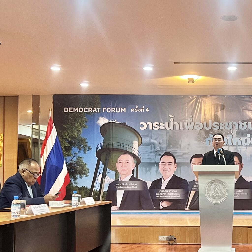 ประเทศไทยมีค่าเฉลี่ยการเข้าถึงน้ำสะอาดต่ำมากเมื่อเทียบกับค่าเฉลี่ยโลกที่ 73% โดยไทยติดอันดับรั้งท้ายที่มีเพียง 4% ที่ใช้น้ำสะอาด การสัมมนาครั้งนี้เป็นโอกาสสำคัญในการระดมความคิดจากตัวแทนหน่วยงานที่เกี่ยวข้อง นำไปเป็นข้อสรุปสำหรับพัฒนานโยบายพรรคฯ เพื่อให้ทุกประปาหมู่บ้านต้องสามารถดื่มได้ เพราะการแก้ไขปัญหาน้ำสะอาดเป็นรากฐานสำคัญในการยกระดับคุณภาพชีวิตของประชาชน และพรรคประชาธิปัตย์มุ่งมั่นที่จะทำให้ประเทศไทยหลุดพ้นจากการใช้น้ำที่ไม่ได้มาตรฐาน เพื่อสุขภาพที่ดีกว่า