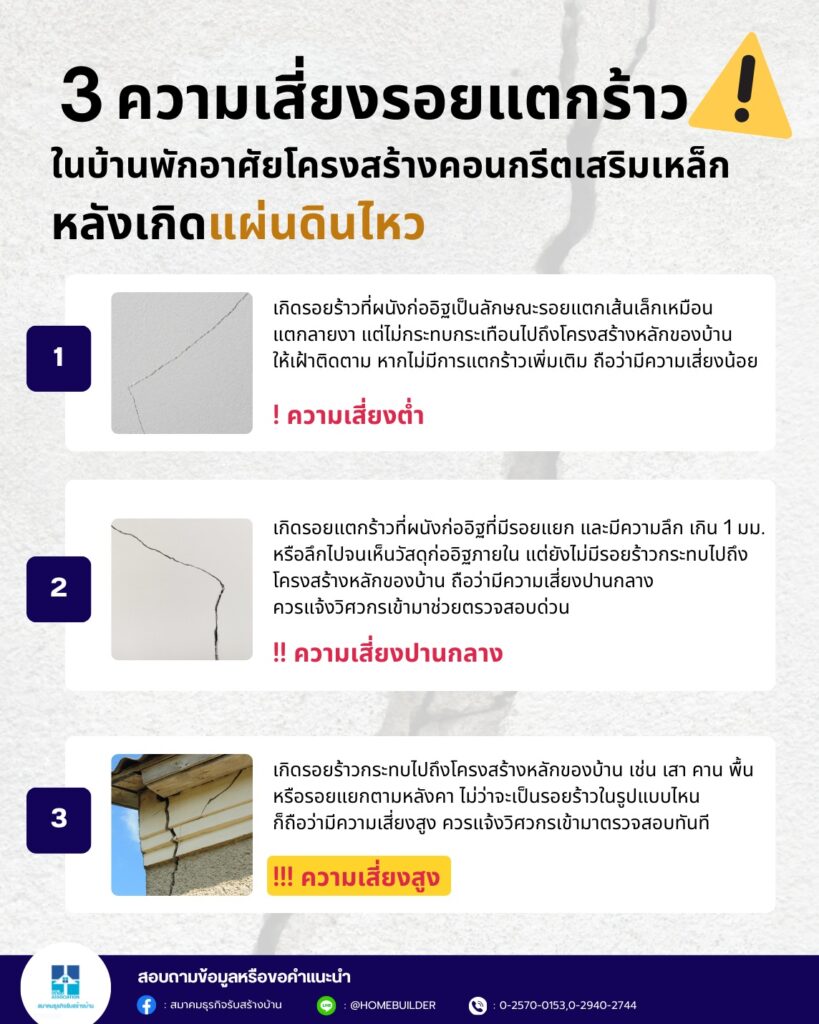 สำหรับแนวทางเบื้องต้นให้ผู้บริโภค สำรวจรอยแตกร้าวในบ้านพักอาศัย โครงสร้างคอนกรีตเสริมเหล็ก หลังเกิดเหตุการณ์แผ่นดินไหว