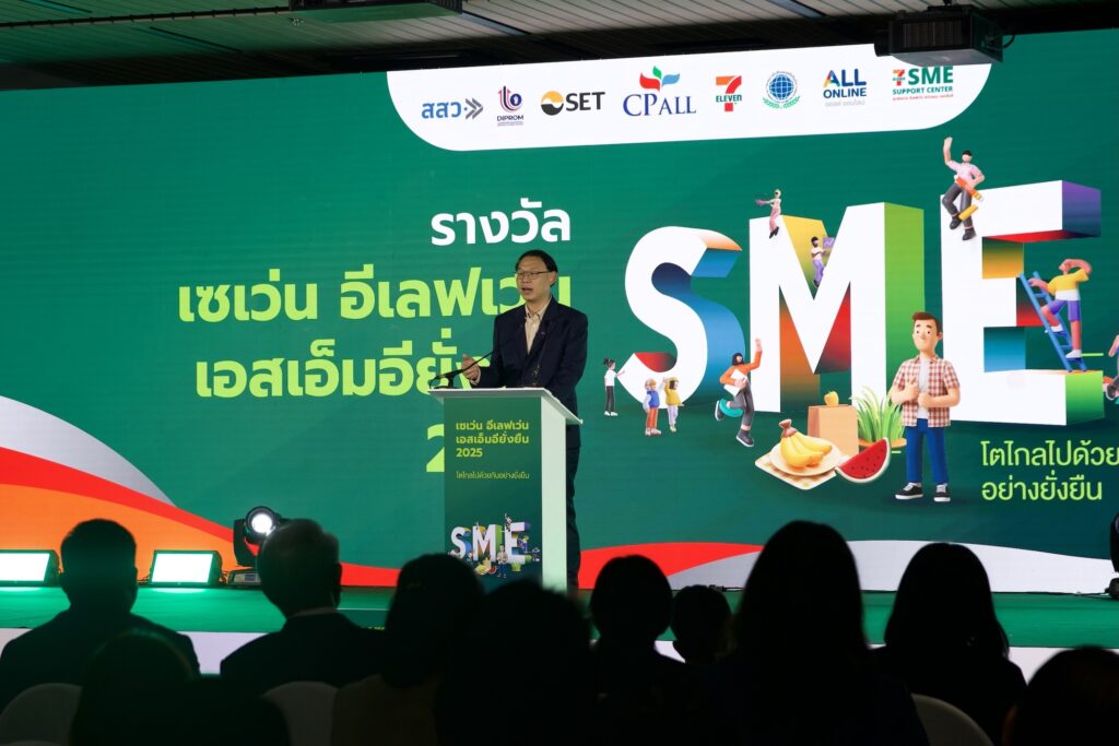 “เซเว่น อีเลฟเว่น” ผนึก 3 พันธมิตรระดับประเทศ “กสอ.-สสว.-ตลาดหลักทรัพย์ฯ” จัดงานมอบรางวัล “เซเว่น อีเลฟเว่น เอสเอ็มอียั่งยืน 2025” อย่างยิ่งใหญ่ต่อเนื่องปีที่ 8 ตอกย้ำความสำเร็จเหล่าผู้ประกอบการ SME ไทย 18 ราย จาก 10 ประเภทรางวัล ที่มุ่งยกระดับสินค้าในหลากหลายมิติทั้งเศรษฐกิจ สังคม และสิ่งแวดล้อมอย่างยั่งยืน เผยกลุ่ม SME อาหารไทยมาแรง น้ำพริกป้าแว่น-น้ำพริกมินิรุ่งเจริญ-น้ำพริกเอมโอชา กอดคอคว้ารางวัลยั่งยืน-รางวัลดาวรุ่ง พร้อมดึง “ซีเค เจิง” จัด Special Talk ติดอาวุธความรู้ SME ไทย ปั้นสินค้าสู่ตลาดโลก