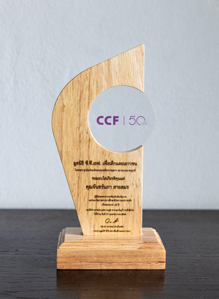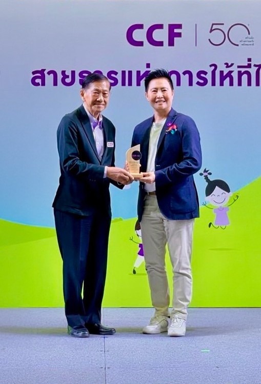 รับมอบโล่เชิดชูเกียรติจากมูลนิธิ ซี.ซี.เอฟ. เพื่อเด็กและเยาวชนฯ ในฐานะผู้อุปการะมูลนิธิช่วยเหลือเด็กด้อยโอกาสทางการศึกษาเป็นระยะเวลา 20 ปี