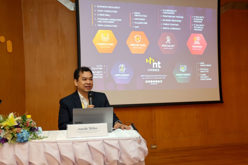 นายสุรเชษฐ์ ศรีพลกรัง รองกรรมการผู้จัดการใหญ่สายงานยุทธศาสตร์องค์กร บริษัท โทรคมนาคมแห่งชาติ จำกัด (มหาชน) หรือ NT ให้การต้อนรับ นายมงคล จันทษี รองผู้ว่าการเคหะแห่งชาติ ในโอกาสนำคณะผู้บริหารหลักสูตร โครงการพัฒนาผู้สืบทอดตำแหน่งทางการบริหาร NHA Successor Development Program ศึกษาดูงานเทคโนโลยีดิจิทัลและนวัตกรรม ด้านความมั่นคงปลอดภัยไซเบอร์และการจัดการความปลอดภัยไซเบอร์ภาครัฐ พร้อมรับฟังการบรรยายเรื่อง “ความมั่นคงปลอดภัยไซเบอร์ยุคดิจิทัล” โดย นายรนกร ปลื้มสุวรรณ ฝ่ายเทคโนโลยีแพลตฟอร์มและมาตรฐานโซลูชั่นและ “บริการ Cyber Security ในภาพรวมของ NT Cyfence” โดย นายเกษมนัส ไม้เรียง ผู้จัดการส่วนประจำ ฝ่ายผลิตภัณฑ์ความปลอดภัยไซเบอร์ ณ NT สำนักงานแจ้งวัฒนะ