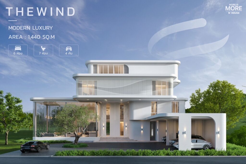 “THE WIND”  คฤหาสน์ 4 ชั้น สไตล์ Super Luxury Modern ขนาด 1,440 ตร.ม. จำนวน 6 ห้องนอน 7 ห้องน้ำ และ 4 ที่จอดรถ โดดเด่นด้วยงานออกแบบโดยได้แรงบันดาลใจจากสายลมและพายุ โดดเด่นด้วยการเล่นระดับแบบมีไดนามิก และ Courtyard กลางบ้าน และลิฟต์ส่วนตัว