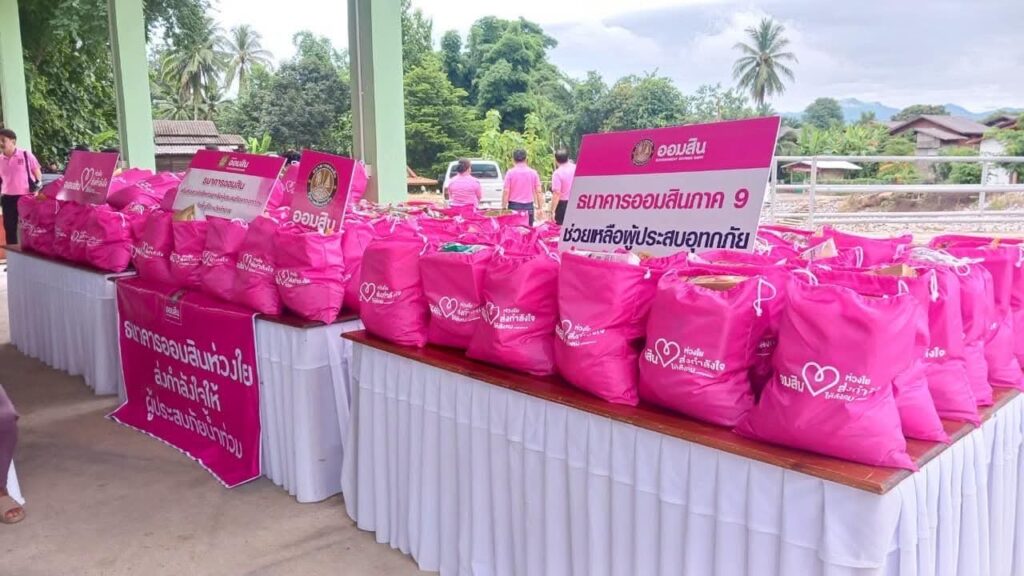 นอกจากนี้ ธนาคารได้ส่งมอบความช่วยเหลือที่จำเป็นเร่งด่วนลงในพื้นที่ของทั้ง 2 เหตุการณ์ โดยในส่วนของสถานการณ์น้ำท่วม ธนาคารได้มอบงบประมาณช่วยเหลือเร่งด่วน จำนวน 750,000 บาท เพื่อบรรเทาความเดือดร้อนให้ประชาชนในพื้นที่ 5 จังหวัด ได้แก่ น่าน เชียงราย พะเยา แพร่ และลำปาง พร้อมมอบหมายให้ธนาคารออมสินในพื้นที่ ส่งมอบถุงออมสินห่วงใย สำหรับผู้ประสบภัยใช้ประทังชีวิตและบรรเทาความเดือดร้อนเฉพาะหน้า จำนวนกว่า 2,500 ชุด และจัดส่งเครื่องอุปโภคบริโภค วัตถุดิบในการประกอบอาหาร ตลอดจนสิ่งของเครื่องใช้ที่จำเป็น ไปยังโรงพยาบาลสนามในพื้นที่ที่ยังไม่สามารถเข้าถึงได้ ส่วนสถานการณ์ความไม่สงบของพื้นที่ชายแดนไทย-กัมพูชา ได้จัดสรรงบประมาณ จำนวน 500,000 บาท สนับสนุนสิ่งของจำเป็นให้แก่ศูนย์พักพิงในจังหวัดอุบลราชธานี ศรีสะเกษ สุรินทร์ และบุรีรัมย์