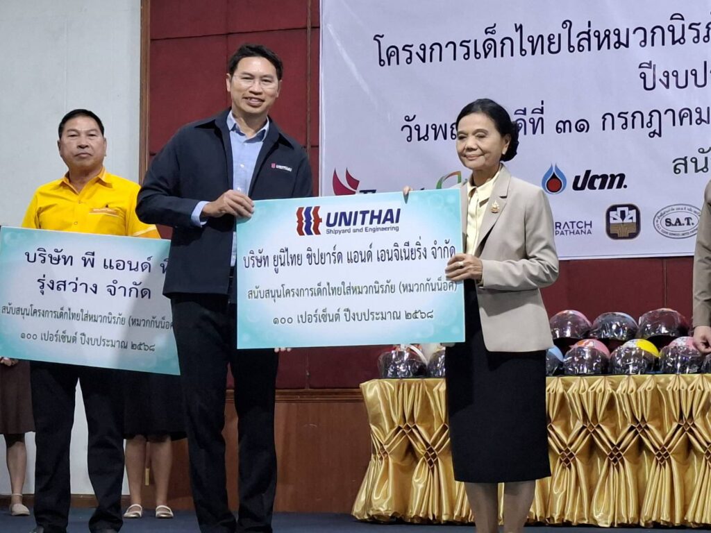 บริษัท ยูนิไทยชิปยาร์ดฯ สนับสนุนหมวกนิรภัย ให้กับนักเรียนในพื้นที่แหลมฉบัง ภายใต้โครงการเด็กไทยใส่หมวกนิรภัย (หมวกกันน็อค) 100 เปอร์เซ็นต์ ประจำปี 2568จัดโดย เทศบาลนครแหลมฉบัง