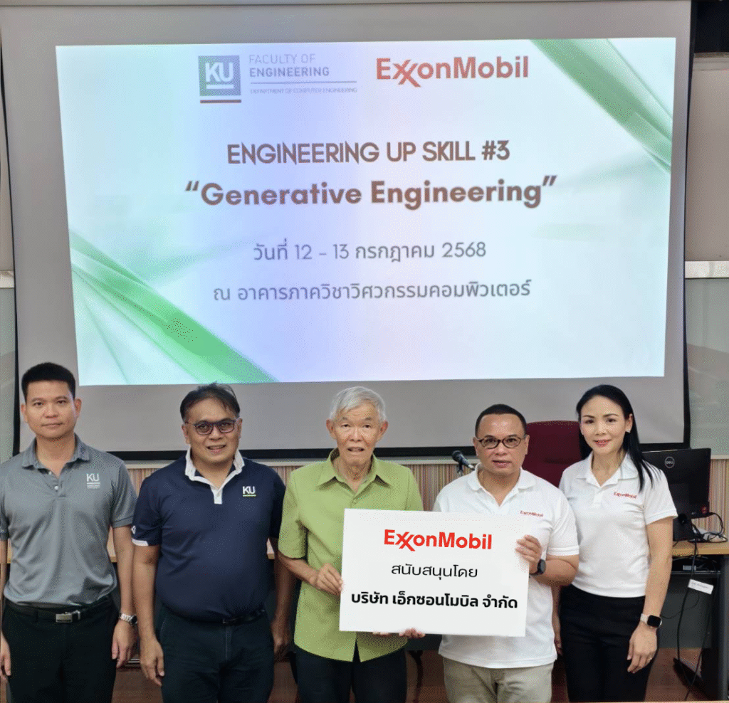บริษัท เอ็กซอนโมบิล จำกัด สนับสนุนโครงการ Engineering Upskill ในหัวข้อ Generative Engineering เน้นการสร้าง Engineering Senses ซึ่งจัดโดยภาควิชาวิศวกรรมคอมพิวเตอร์ คณะวิศวกรรมศาสตร์ มหาวิทยาลัยเกษตรศาสตร์ให้กับนักเรียนมัธยมปลายที่มีความสนใจใน “วิศวกรรมคอมพิวเตอร์”