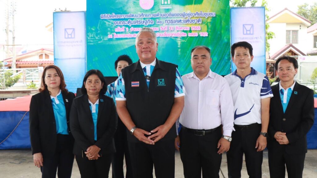 รัฐบาลอัดฉีดงบกระตุ้นเศรษฐกิจให้การเคหะแห่งชาตินำมาจัดทำ “โครงการพัฒนาศักยภาพด้านอาชีพของผู้อยู่อาศัยในชุมชนของการเคหะแห่งชาติ” หวังเพิ่มรายได้ ลดรายจ่ายให้กับผู้อยู่อาศัยได้มีความมั่นคงในชีวิตนำไปสู่การมีคุณภาพชีวิตที่ดี ด้วยการถือฤกษ์ดีจัดกิจกรรม Kick off อย่างเป็นทางการที่โครงการบ้านเอื้ออาทรรังสิต คลอง 10/2 และอีก 37 ชุมชนทั่วประเทศพร้อมกันผ่านระบบ Zoom Meeting โดยมี นายทวีพงษ์ วิชัยดิษฐ ผู้ว่าการการเคหะแห่งชาติ เป็นประธานเปิดกิจกรรมดังกล่าว พร้อมด้วยผู้บริหารการเคหะแห่งชาติ หน่วยงานภาคีเครือข่ายที่เกี่ยวข้อง ผู้นำชุมชน ผู่อยู่อาศัยในชุมชนทุกช่วงวัยและกลุ่มเปราะบางเข้าร่วมกิจกรรม ในวันที่ 31 สิงหาคม 2568 ณ โครงการบ้านเอื้ออาทรรังสิตคลอง 10/2 จังหวัดปทุมธานี