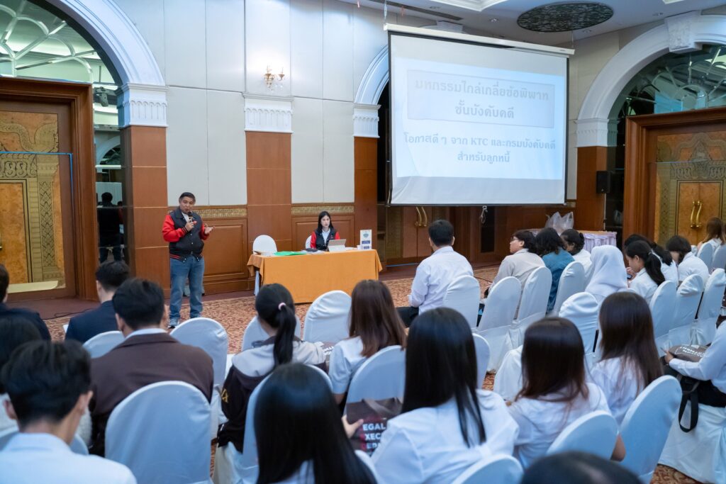 เคทีซีเดินหน้าสร้างสังคมแห่งความรู้และความเข้าใจด้านกฎหมาย ล่าสุดร่วมกับกรมบังคับคดีจัดกิจกรรมถ่ายทอดองค์ความรู้ด้านกฎหมายว่าด้วยการประนอมหนี้และการไกล่เกลี่ยข้อพิพาท พร้อมกรณีศึกษาจากประสบการณ์จริงให้แก่อาจารย์และนักศึกษาหลักสูตรนิติศาสตร์บัณฑิต มหาวิทยาลัยวลัยลักษณ์ ภายในงาน “มหกรรมไกล่เกลี่ยข้อพิพาทชั้นบังคับคดี ครั้งที่ 38” ซึ่งจัดร่วมกับ บริษัท กรุงไทยธุรกิจลีสซิ่ง จำกัด และบริษัท วินเพอร์ฟอร์มานซ์ จำกัด โดยมีนายปวีณ กุมาร ผู้อำนวยการสำนักงานบังคับคดีจังหวัดนครศรีธรรมราช ร่วมเป็นเกียรติในงาน ณ โรงแรมเดอะทวิน โลตัส จังหวัดนครศรีธรรมราช