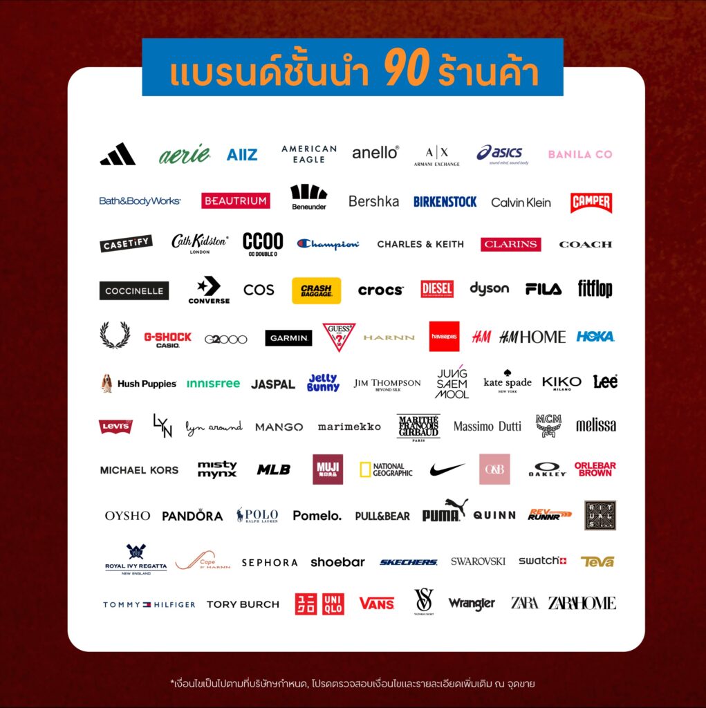 • รวมกว่า 90 แบรนด์แฟชั่นชั้นนำ ครบทุกสไตล์ ตั้งแต่ Fast Fashion ไปจนถึง Lifestyle Brand อาทิ ADIDAS, BEAUTRIUM, BIRKENSTOCK, CASETiFY, CC DOUBLE O, CHARLES&KEITH, H&M, H&M HOME, JASPAL, LYN, MARITHE + FRANCOIS GIRBAUD, NIKE, POLO RALPH LAUREN, PUMA, UNIQLO, ZARA, ZARA HOME และอื่นๆ อีกมากมาย