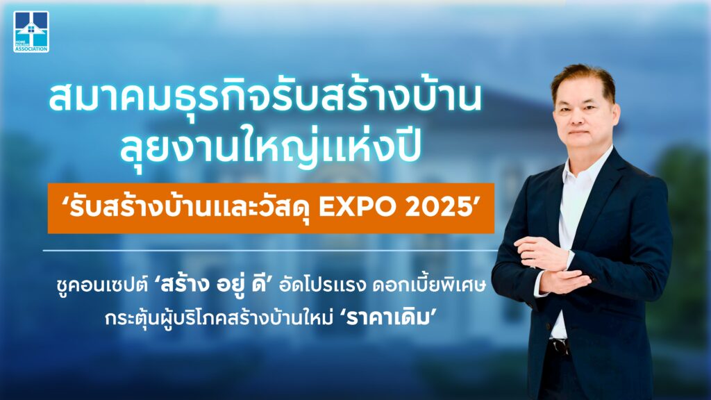 สมาคมธุรกิจรับสร้างบ้าน (HBA) เปิดฉากยิ่งใหญ่งาน ‘รับสร้างบ้านและวัสดุ EXPO 2025’ ชูคอนเซปต์ ‘สร้าง อยู่ ดี’ อัดแน่นไฮไลต์เพื่อคนที่ต้องการสร้างบ้านในฝัน รับข้อเสนอที่ดีที่สุดจาก 30 บริษัทรับสร้างบ้านชั้นนำ พลาดไม่ได้พบบ้านใหม่คุณภาพสูงใน ‘ราคาเดิม’ ก่อนปรับราคาใหม่ต้นปี 69 มีแบบบ้านทุกระดับราคากว่า 1,000 แบบ เสวนาความรู้ที่น่าสนใจ ‘สถาปนิกทอล์ก’ ‘ฮวงจุ้ยเสริมมงคล’ พร้อมส่วนลดพิเศษ ของแถม รางวัลทองคำมูลค่ากว่า 4 แสนบาท งานจัดระหว่าง 10 – 14 กันยายน 2568 อิมแพ็ค เมืองทองธานี ฮอลล์ 6 ตั้งเป้ายอดขายพุ่ง 4,500 ล้านบาท พร้อมแนะสมาชิกสมาคมฯ ดึงเทคโนโลยีเสริมทัพ แก้วิกฤตแรงงานขาดแคลน เพื่อรับมือความท้าทายต้นทุนก่อสร้าง เศรษฐกิจ การเมือง