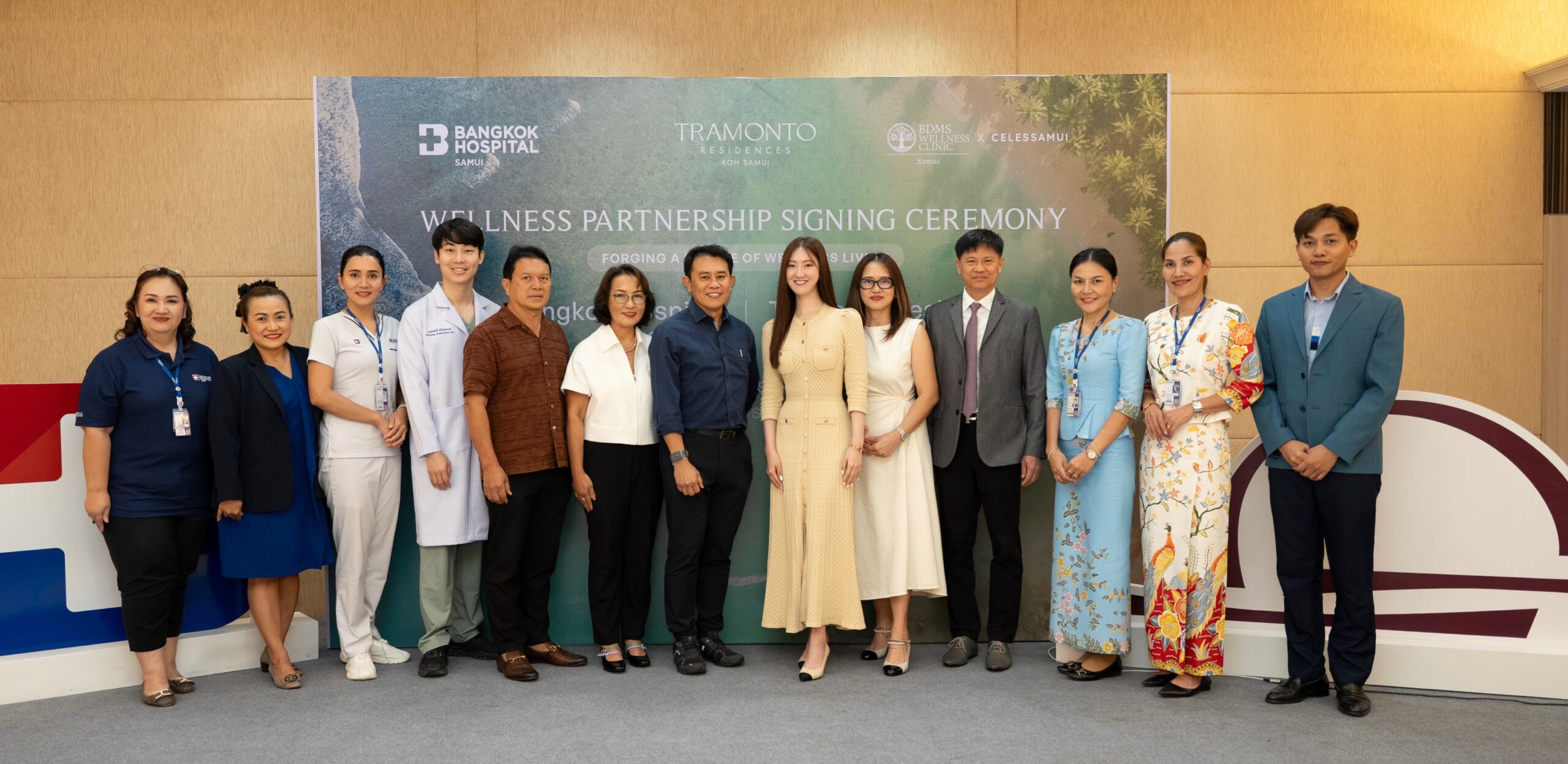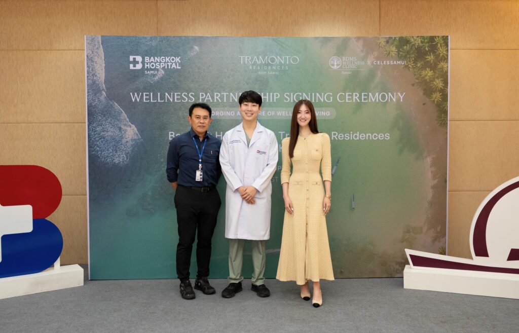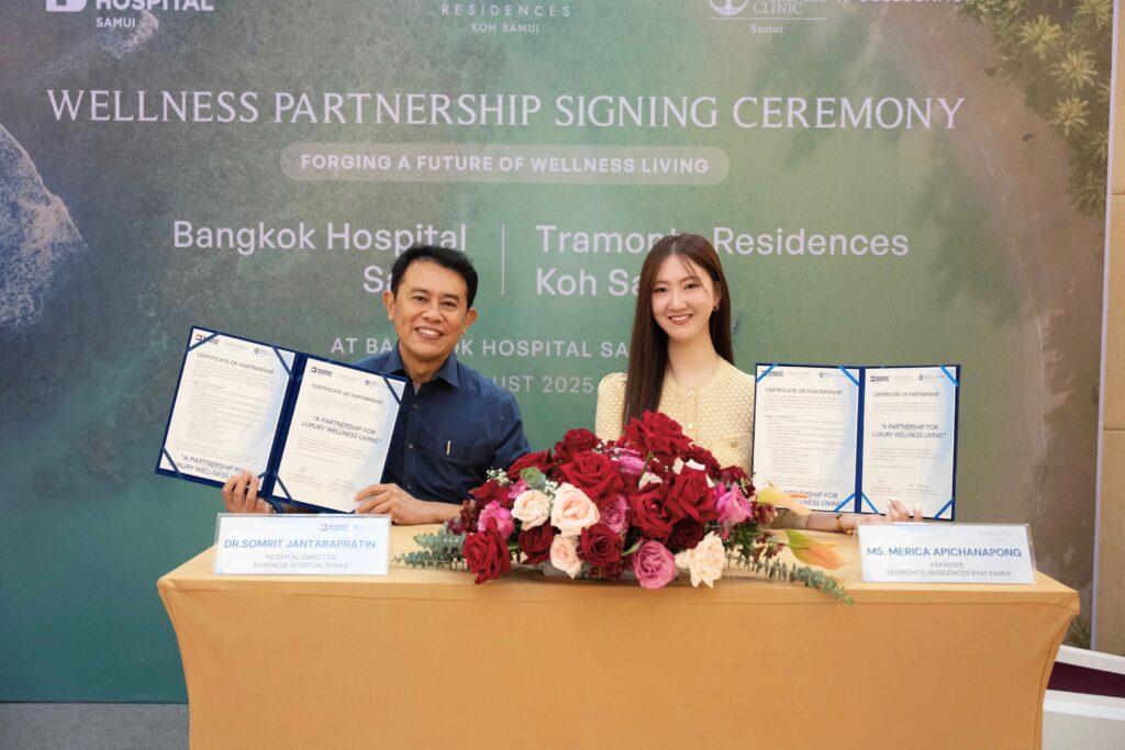 Tramonto Residences โครงการบ้านพักอาศัยระดับลักชัวรี และโรงพยาบาลกรุงเทพสมุย นำโดยนายแพทย์ สมฤทธิ์ จันทรประทิน ผู้อำนวยการโรงพยาบาลกรุงเทพสมุย และ Merica Apichanapong, Founder and CEO, Out of Office Co., Ltd. (Tramonto Residences) ร่วมลงนามบันทึกข้อตกลงความร่วมมือเชิงยุทธศาสตร์ เพื่อส่งมอบประสบการณ์การใช้ชีวิตที่ผสานสุขภาพแบบองค์รวมเข้ากับสถาปัตยกรรมและไลฟ์สไตล์ระดับโลก ตลอดจนการส่งมอบประสบการณ์ด้านการดูแลสุขภาพแบบองค์รวมผ่านแพ็กเกจการดูแลสุขภาพต่าง ๆ จาก BDMS Wellness Clinic Celes Samui แก่คอมมูนิตี Tramonto Residences