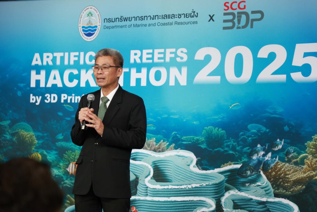กรมทรัพยากรทางทะเลและชายฝั่ง และ SCG 3D Printing โชว์ผลงาน “ฐานลงเกาะตัวอ่อนปะการัง Whirling Wave Pagoda หรือเจดีย์เกลียวคลื่น” ไอเดียต้นแบบรางวัลชนะเลิศจากโครงการ “ARTIFICIAL REEFS HACKATHON 2025” มาพัฒนา ต่อยอดผลิตด้วยเทคโนโลยี3D Printing จาก SCG เพื่อเป็นโครงการต้นแบบ นำร่องจัดวางในพื้นที่ตามแผนงานอนุรักษ์ฟื้นฟูทรัพยากรทางทะเลของไทยในปี 2569