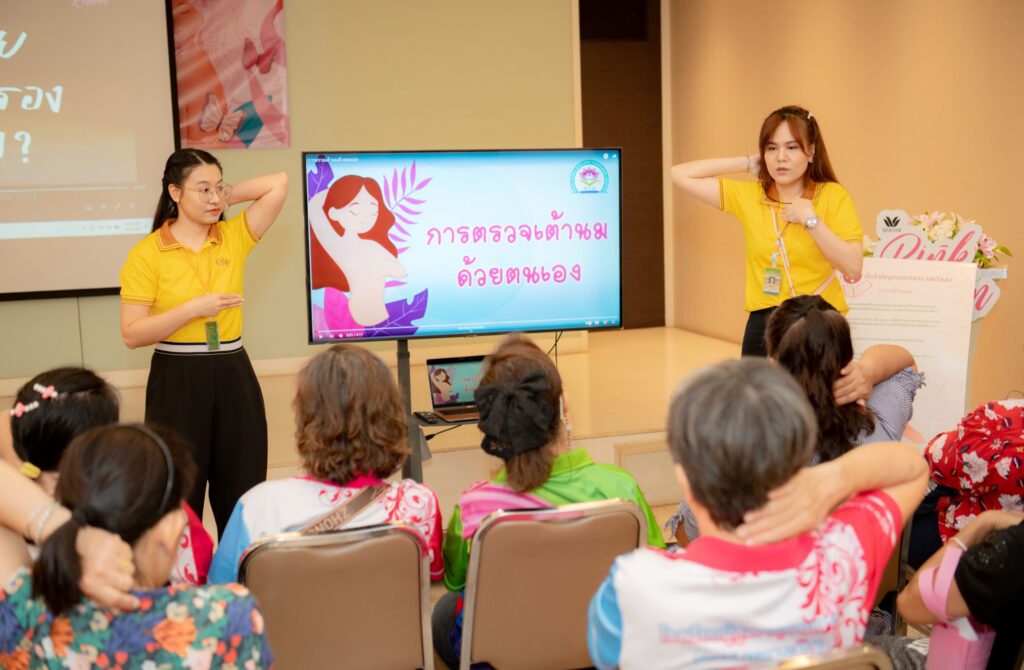 โครงการ “วาโก้โบว์ชมพู สู้มะเร็งเต้านม” ยังคงมุ่งมั่นให้ความรู้และตรวจคัดกรองเชิงรุกในชุมชนอย่างต่อเนื่อง โดยมีผู้เข้าร่วมกิจกรรมแล้วกว่า 3,000 คน และในปีนี้ ได้ขยายการดำเนินงานร่วมกับมูลนิธิรักษ์ไทย ไปยัง 4 จังหวัดในภาคตะวันออก ได้แก่ ชลบุรี ระยอง จันทบุรี และตราด เพื่อให้ความรู้เรื่องมะเร็งเต้านมในวงกว้างมากขึ้น