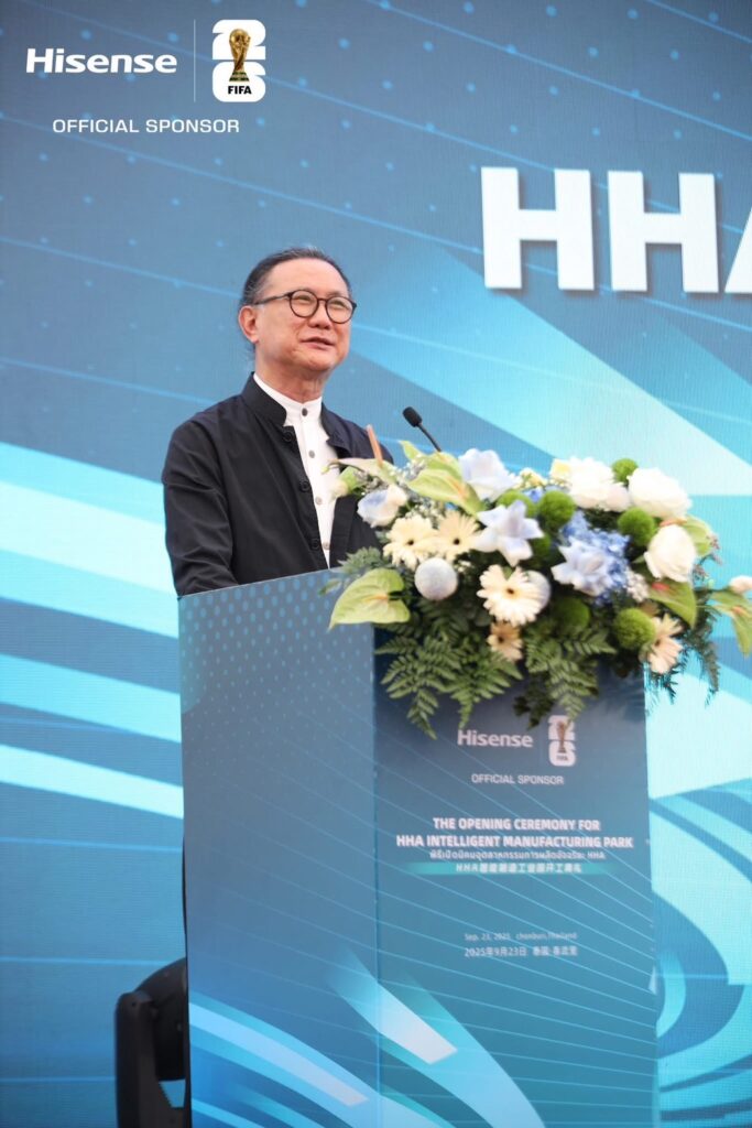 นายโทมัส เทา ผู้จัดการทั่วไป HHA Industrial Park เปิดเผยว่าHisense ในฐานะหนึ่งในบริษัทจีนรายแรกๆ ที่ก้าวสู่เวทีโลก เริ่มขยายธุรกิจโดยยึดกลยุทธ์มุ่งเน้นตลาดต่างประเทศเป็นแกนหลักอย่างต่อเนื่อง และในปี 2567 บริษัทได้มีการตั้งเป้าหมายใหม่สู่ “การสร้างองค์กรระดับโลกและเป็นแบรนด์ระดับโลก” Hisense จึงเดินหน้ากลยุทธ์ “Local for Local” เพื่อสร้างเครือข่ายครบวงจรผ่านศูนย์ปฏิบัติการ 7 แห่ง ศูนย์วิจัยและพัฒนา (R&D) 30 แห่ง และนิคมอุตสาหกรรม 36 แห่งทั่วโลก โดย Hisense เลือกประเทศไทยให้เป็นหนึ่งประเทศยุทธศาสตร์สำคัญสำหรับการลงทุนตั้งฐานการผลิตและเป็นศูนย์กลางการพัฒนานวัตกรรมที่ตอบโจทย์ผู้บริโภค เพื่อรองรับการขยายธุรกิจในอาเซียน ซึ่งเป็นยุทธศาสตร์สำคัญในการยกระดับขีดความสามารถการแข่งขันระดับโลก