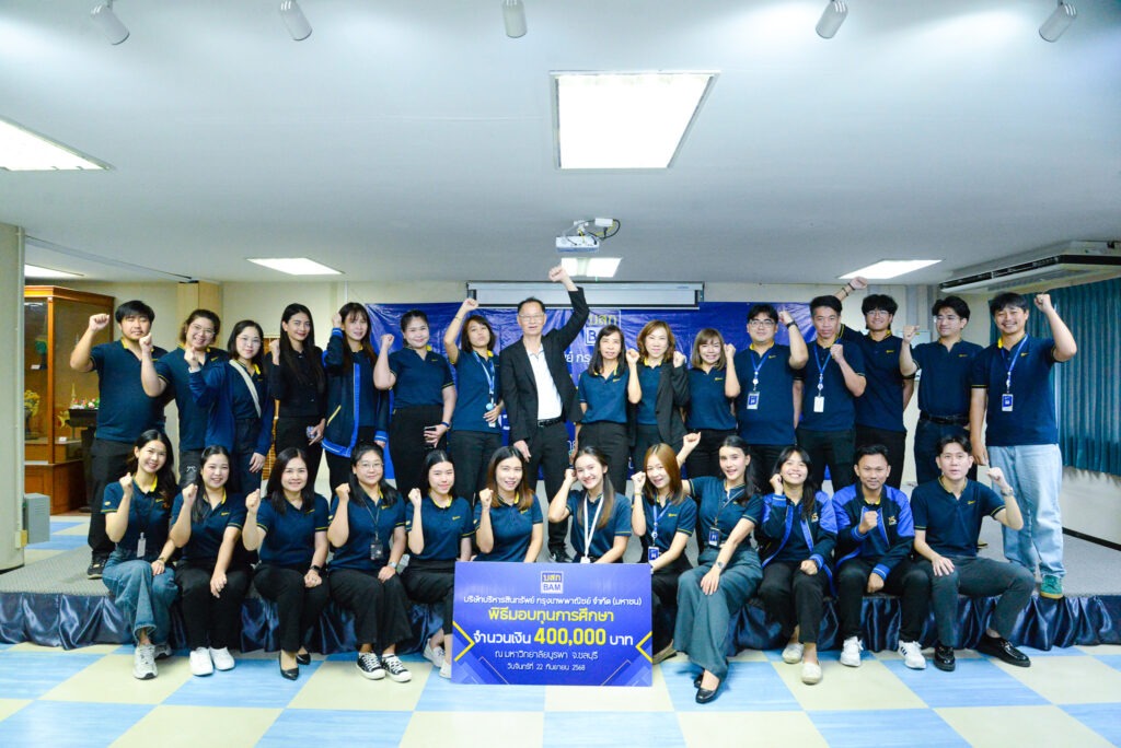 นายประสิทธิ์ เงินถาวรกุล ผู้อำนวยการฝ่ายพัฒนาสินทรัพย์ภาคตะวันออก นางปฏิญญา เจนศิริศักดิ์ ผู้จัดการสำนักงานชลบุรี นางสาวพิมพ์ชนา ศรีสุขพัฒนาชัย ผู้จัดการสำนักงานระยอง นางสุมาลี พงษ์พานิช ผู้จัดการสำนักงานฉะเชิงเทรา นางสาวชฎาภรณ์ วงศ์ชีวะ ผู้จัดการกลุ่มประชาสัมพันธ์ พร้อมทั้งพนักงานบริษัทบริหารสินทรัพย์ กรุงเทพพาณิชย์ จำกัด (มหาชน) หรือ BAM ร่วมจัดพิธีมอบทุนการศึกษาประจำปี 2568 ในเขตพื้นที่สถานศึกษาภาคตะวันออกให้กับนักเรียนระดับมัธยมศึกษาจำนวน 8 โรงเรียน โรงเรียนละ 5 ทุน รวม 40 ทุน ทุนละ 5,000 บาท และระดับอุดมศึกษา รวม 10 ทุน ทุนละ 20,000 บาท รวมมอบทุนการศึกษาทั้งสิ้น 50 ทุน เป็นเงิน 400,000 บาท ณ อาคารกองกิจการนิสิต ชั้น 2 มหาวิทยาลัยบูรพา จังหวัดชลบุรี
