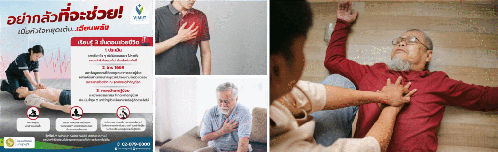 หัวใจของคนเราจะเต้น 60-100 ครั้งต่อนาที เพื่อสูบฉีดเลือดไปเลี้ยงส่วนต่าง ๆ ของร่างกายตลอดเวลา และหากหัวใจหยุดเต้นกะทันหัน เลือดจะไปเลี้ยงอวัยวะสำคัญไม่ได้ ทำให้หมดสติอย่างรวดเร็ว และภายในไม่ถึง 5 นาที เราอาจเข้าสู่ภาวะสมองขาดเลือดและเสียชีวิตได้ทันทีหากไม่ได้รับการช่วยเหลืออย่างทันเวลา ที่น่ากังวลคือ “ภาวะหัวใจหยุดเต้นเฉียบพลัน” เป็นภัยเงียบที่แทบไม่ส่งสัญญาณเตือนล่วงหน้า และเกิดขึ้นได้กับทุกคนแม้แต่คนที่แข็งแรงและออกกำลังกายเป็นประจำ โดยกรมควบคุมโรคเผยว่า คนไทยเสียชีวิตจาก “ภาวะหัวใจหยุดเต้นเฉียบพลัน” มากกว่า 54,000 รายต่อปีวันนี้ นพ.ราม บรรพพงษ์ เวชศาสตร์ฉุกเฉิน ศูนย์ฉุกเฉิน รพ.วิมุต จะมาเล่าถึงการรับมือกับภาวะหัวใจหยุดเต้นเฉียบพลันและเน้นย้ำถึงสิ่งที่ควรทำหากคนรอบตัวต้องเผชิญกับภัยร้ายนี้
