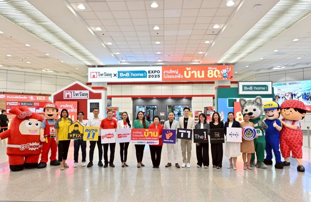 งานปีนี้โดดเด่นด้วยการผนึกกำลังแบรนด์ชั้นนำ ไม่ว่าจะเป็นพันธมิตรหลักอย่าง เพาเวอร์บาย (Power Buy) ที่นำเสนอเครื่องใช้ไฟฟ้า สินค้าอิเล็กทรอนิกส์ แกดเจ็ต Smart Appliance รุ่นใหม่ล่าสุด ที่คัดสรรมาเพื่อผู้บริโภคได้ช้อปในราคา Clearance Sale 80% อีกทั้ง ยูเนี่ยนแพน (Union Pan) ผู้นำด้านเฟอร์นิเจอร์ชุดห้องนอนและโซฟาพรีเมียม ที่ร่วมจัดงาน BEDROOM Set EXPO & SOFA EXPO ภายใต้คอนเซ็ปต์ ‘พรีเมี่ยมเฟอร์นิเจอร์ เซลล์ 2025’ คัดสรรไอเท็มเด็ด เฟอร์นิเจอร์ยอดนิยม มาพร้อมฟังก์ชั่นและดีไซน์หลากหลาย ตอบโจทย์ทุกไลฟสไตล์เจ้าของบ้านได้เป็นอย่างดี  นอกจากนี้ยังมี ออโต้วัน (AUTO1) ศูนย์บริการรถยต์ครบวงจร เครือเซ็นทรัล รีเทล ร่วมจัดงาน AUTO1 EXPO 2025 มหกรรมยางรถยนต์ มอบดีลพิเศษเพื่อคนรักรถ ซื้อสินค้ายางรถยนต์ 3 แถม 1 พร้อมส่วนลดเพิ่มอีก 2,000 บาท รวมทั้ง โก! ว้าว (go! WOW) โซนบูธร้านของใช้เบ็ดเตล็ด กับโปรฯ ซื้อ 3 แถม 1 และ ซื้อ 2 แถม 4 ให้ลูกค้าได้ช้อปเพลินอย่างสบายใจ สบายกระเป๋า การรวมตัวของพันธมิตรจะช่วยให้งาน ‘ไทวัสดุ x บีเอ็นบี โฮม เอ็กซ์โป 2025 งานใหญ่โปรแรงเพื่อบ้าน’ เป็นอีกงานสำคัญที่ทุกคนไม่ควรพลาด