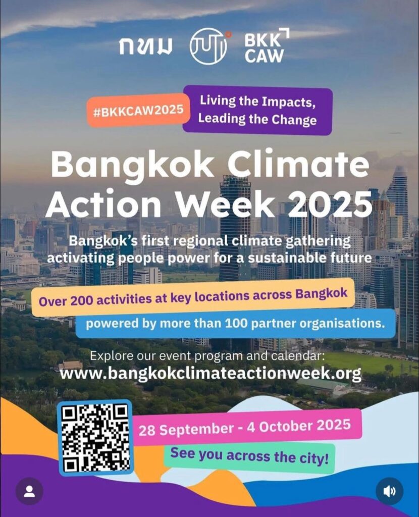 “สัปดาห์การขับเคลื่อนด้านสภาพภูมิอากาศกรุงเทพฯ” จะดำเนินไปจนถึงวันที่ 4 ตุลาคม 2568 โดยมีกิจกรรมหลากหลายทั่วกรุงเทพฯ อาทิ การแลกเปลี่ยนความคิดเห็นกับผู้นำด้านสภาพภูมิอากาศ การอบรมเชิงปฏิบัติการ และการแสดงศิลปะที่สร้างแรงบันดาลใจ เพื่อผลักดันการเปลี่ยนแปลงที่จำเป็นต่อการสร้างอนาคตที่ยั่งยืนให้กับกรุงเทพฯ และภูมิภาคเอเชียตะวันออกเฉียงใต้