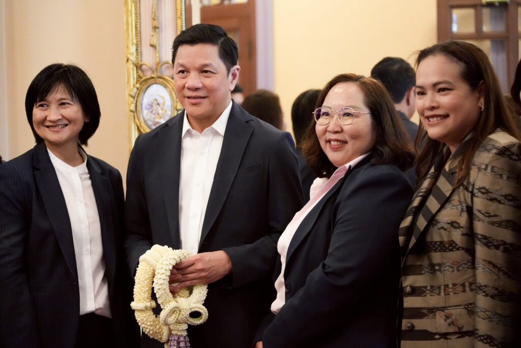 นางลภาวรรณ จันทร์กระจ่าง รองผู้อำนวยการธนาคารออมสิน รักษาการผู้อำนวยการธนาคารออมสิน เป็นตัวแทนธนาคารออมสิน นำคณะผู้บริหาร ร่วมแสดงความยินดีกับ นายวิทัย รัตนากร ผู้ว่าการธนาคารแห่งประเทศไทย ในโอกาสเข้ารับตำแหน่งอย่างเป็นทางการ ณ ธนาคารแห่งประเทศไทย เมื่อวันที่ 1 ตุลาคม 2568