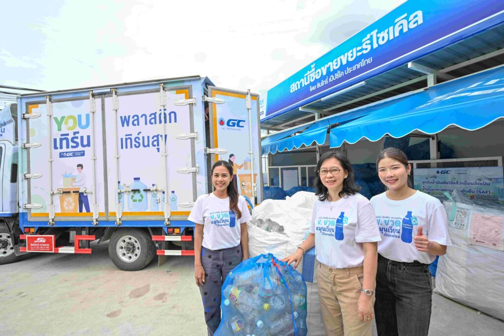 โดย GC YOUเทิร์น แพลตฟอร์มบริหารจัดการพลาสติกใช้แล้วแบบครบวงจร จะเข้ามาสนับสนุนการเข้ารับวัสดุรีไซเคิล ที่สถานีซื้อขายขยะ และจะจัดส่งต่อวัสดุรีไซเคิลให้เข้าสู่กระบวนการจัดการอย่างถูกต้องและมีประสิทธิภาพ