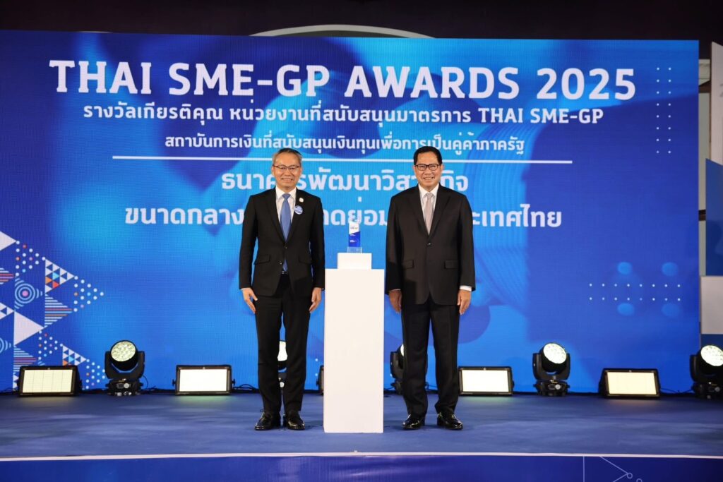 นายพิชิต มิทราวงศ์ กรรมการผู้จัดการ ธนาคารพัฒนาวิสาหกิจขนาดกลางและขนาดย่อมแห่งประเทศไทย (ธพว.) หรือ SME D Bank รับมอบโล่ประกาศเกียรติคุณ “THAI SME-GP AWARDS 2025” จากสำนักงานส่งเสริมวิสาหกิจขนาดกลางและขนาดย่อม (สสว.) ในฐานะหน่วยงานสถาบันการเงิน สนับสนุนการเข้าถึงแหล่งเงินทุนของผู้ประกอบการเอสเอ็มอี เพื่อการเป็นคู่ค้ากับภาครัฐ ประจำปีงบประมาณ 2567 โดยมี นายฐิติพงศ์ เขียวไพศาล ประธานกรรมการบริหาร สสว. เป็นผู้มอบ และ ดร.ปณิตา ชินวัตร รองผู้อำนวยการ รักษาการแทนผู้อำนวยการ สสว. กล่าวรายวัตถุประสงค์การจัดงาน ซึ่งมีเป้าหมายสร้างโอกาสให้ผู้ประกอบการเอสเอ็มอี สามารถเข้าสู่ตลาดทั้งภาครัฐและภาคเอกชนได้อย่างมีประสิทธิภาพ พร้อมทั้งเสริมสร้างองค์ความรู้ด้านการจัดซื้อจัดจ้างภาครัฐและแนวทางปฏิบัติที่ถูกต้อง ควบคู่กับถ่ายทอดกลยุทธ์การทำธุรกิจในยุคใหม่ ช่วยเพิ่มศักยภาพการแข่งขันและสนับสนุนการเติบโตของธุรกิจอย่างมั่นคงและยั่งยืน