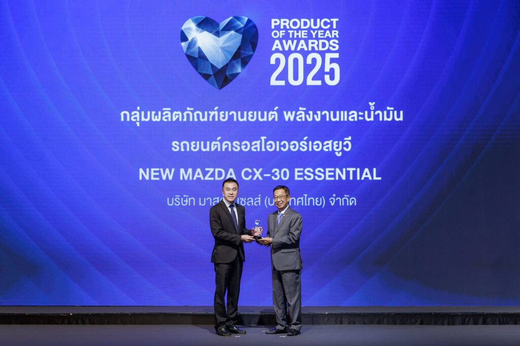 ครอสโอเวอร์เอสยูวีระดับพรีเมี่ยม New Mazda CX-30 Essential คว้ารางวัล Product of the Year Awards 2025 หรือรางวัลสุดยอดสินค้าและบริการแห่งปี จากนิตยสาร Business+ ที่จัดขึ้นเพื่อคัดเลือกสุดยอดสินค้าและบริการแห่งปี ที่ตอบสนองความต้องการของลูกค้า มีความโดดเด่น และสร้างความพึงพอใจให้กับลูกค้า ตอกย้ำถึงแนวทางของบริษัทฯ ต่อการมุ่งมั่นพัฒนานวัตกรรมและเทคโนโลยียานยนต์อันล้ำสมัย ตอบสนองความต้องการของลูกค้าที่มีไลฟ์สไตล์หลากหลาย และส่งมอบประสบการณ์ความสุขในการขับขี่ให้กับลูกค้าได้เป็นอย่างดี โดยพิธีมอบรางวัลครั้งนี้ ได้รับเกียรติจาก ฯพณฯ นุรักษ์ มาประณีต องคมนตรี เป็นประธานมอบรางวัล โดยมี นายภพนิพิฐ จิรวัฒนานนท์ ผู้อำนวยการ ฝ่ายการตลาดและนวัตกรรมดิจิทัล บริษัท มาสด้า เซลส์ (ประเทศไทย) จำกัด เป็นตัวแทนรับมอบฯ ณ ห้องบอลรูม โรงแรมสวิสโฮเต็ล รัชดา กรุงเทพฯ