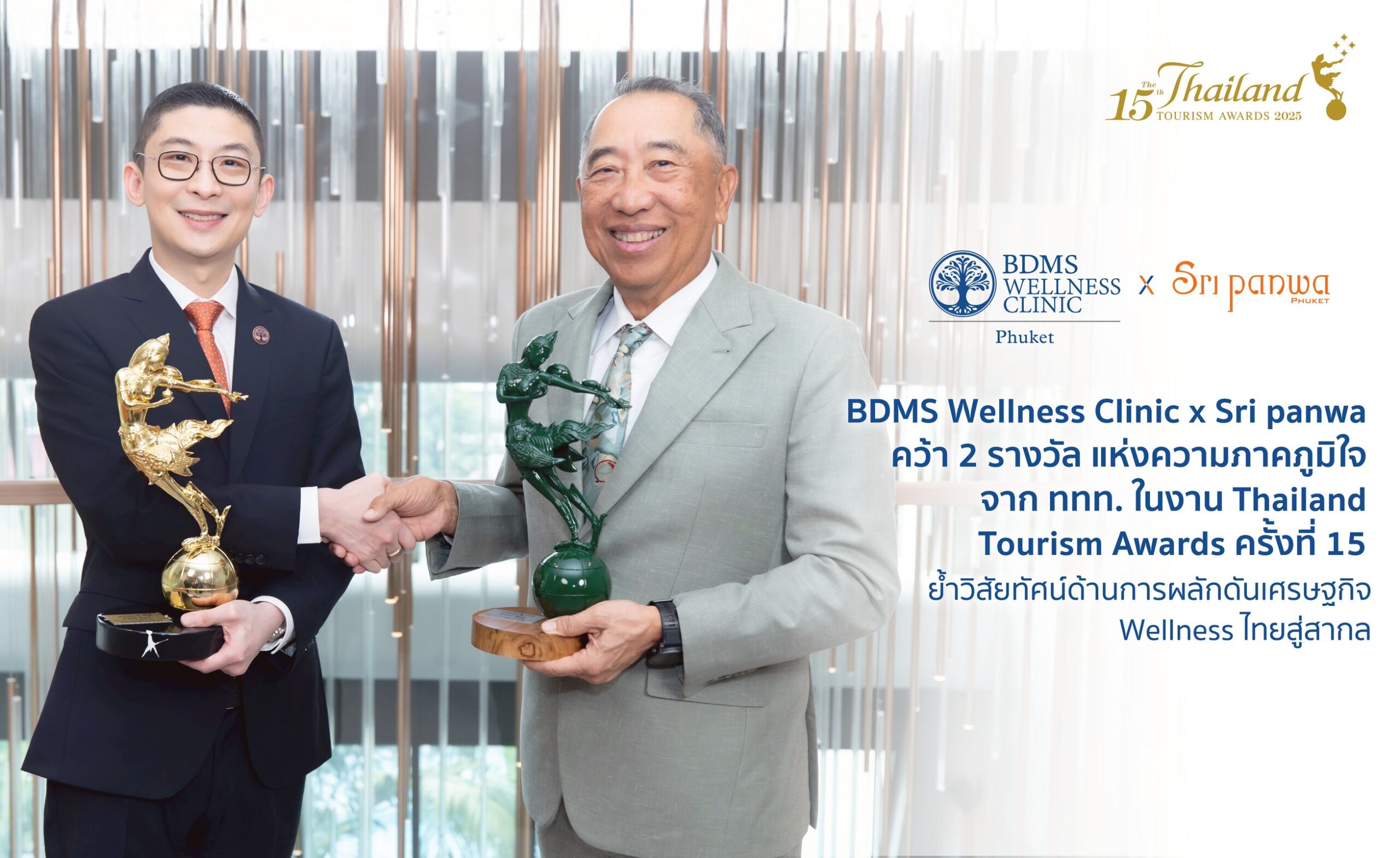 การท่องเที่ยวแห่งประเทศไทย (ททท.) ได้จัดงานรับรางวัลอุตสาหกรรมการท่องเที่ยวไทย หรือ Thailand Tourism Awards ครั้งที่ 15 ประจำปี พ.ศ. 2568 โดยได้รับพระกรุณาธิคุณจากทูลกระหม่อมหญิงอุบลรัตนราชกัญญา สิริวัฒนาพรรณวดี เสด็จเป็นองค์ประธานในพิธี และ ทรงประทานรางวัลแก่องค์กรที่ได้รับคัดเลือก พร้อมมีนางสาวฐาปนีย์ เกียรติไพบูลย์ ผู้ว่าการท่องเที่ยวแห่งประเทศไทยร่วมแสดงความยินดี โดยงานรับรางวัลในครั้งนี้ BDMS Wellness Clinic x Sri panwa ภายใต้การบริหารงานของ นายสงกรานต์ อิสสระ ประธานเจ้าหน้าที่บริหาร บริษัท ชาญอิสสระ ดีเวล็อปเมนท์ จำกัด (มหาชน),นายแพทย์ตนุพล วิรุฬหการุญ ประธานคณะผู้บริหาร บีดีเอ็มเอส เวลเนส คลินิก และ บีดีเอ็มเอส เวลเนส รีสอร์ท บริษัท กรุงเทพดุสิตเวชการจำกัด (มหาชน) และ แพทย์หญิงลลิตา กองสีหา ผู้ช่วยประธานคณะผู้บริหาร กลุ่ม 6 บริษัท กรุงเทพดุสิตเวชการ จำกัด (มหาชน) และ ผู้อำนวยการโรงพยาบาลกรุงเทพภูเก็ต คว้า 2 รางวัลอันทรงเกียรติจากการท่องเที่ยวแห่งประเทศไทย (ททท.) ได้แก่ รางวัลยอดเยี่ยมด้านการท่องเที่ยวเชิงสุขภาพ (Health & Wellness Tourism: Thailand Tourism Excellence Awards) ในสาขา Destination Spa & Wellness หนึ่งในสุดยอดผู้ประกอบการที่มีความโดดเด่นและคุณภาพยอดเยี่ยมในระดับสากล และ รางวัลแห่งความยั่งยืน (Thailand Tourism Sustainability Awards) เชิดชูผู้ประกอบการที่มีความโดดเด่นด้านการบริหารจัดการความยั่งยืน ณ ห้องแกรนด์บอลรูม โรงแรมแกรนด์ ไฮแอท เอราวัณ กรุงเทพมหานคร เมื่อวันที่ 27 กันยายน 2568
