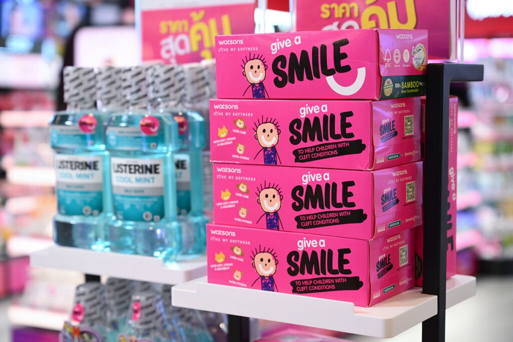 ในปีนี้ วัตสันผนึกกำลังแบรนด์พันธมิตรระดับชั้นนำของเมืองไทยที่มีเป้าหมายร่วมกันในการเสริมสร้างศักยภาพและให้ความสำคัญในเรื่องเดียวกัน ได้แก่ คอลเกต, ดาร์ลี่ และลิสเตอรีน ร่วมกันระดมทุนและนำรายได้จากการจำหน่ายสินค้ามอบให้แก่มูลนิธิสร้างรอยยิ้ม ประเทศไทย (Operation Smile Thailand) องค์กรการกุศลทางการแพทย์ที่ไม่แสวงหาผลกำไร เพื่อให้การช่วยเหลือและมอบโอกาสให้น้องๆ ที่มีภาวะปากแหว่งเพดานโหว่และความผิดปกติอื่นๆ บนใบหน้า ให้ได้เข้ารับการผ่าตัดศัลยกรรม เพื่อให้กลับมามีรอยยิ้มที่สดใสและมั่นใจได้อีกครั้ง