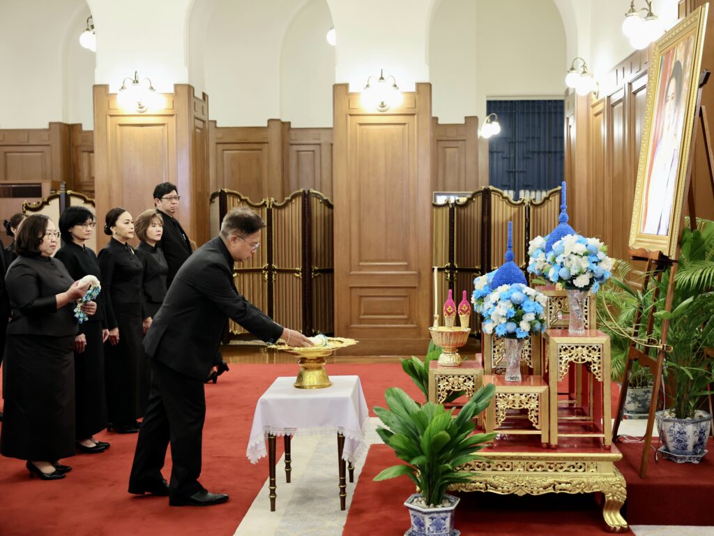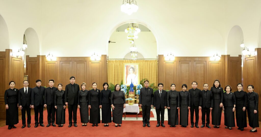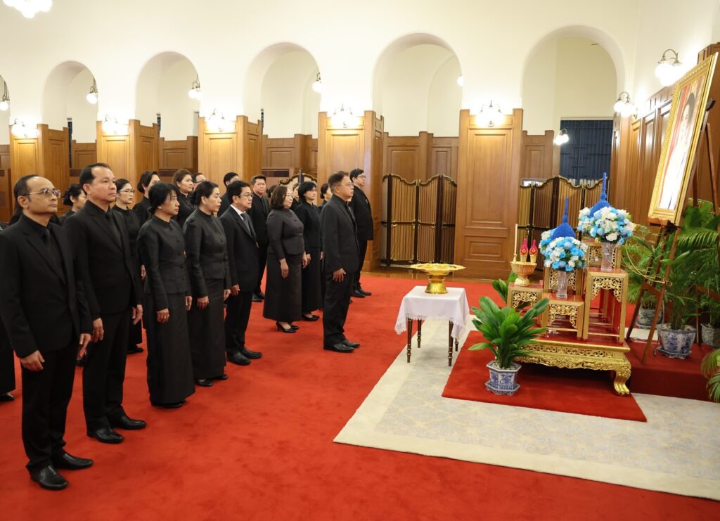 นายธีรัชย์ อัตนวานิช ประธานกรรมการธนาคารออมสิน และนางลภาวรรณ จันทร์กระจ่าง รองผู้อำนวยการธนาคารออมสิน รักษาการแทนผู้อำนวยการธนาคารออมสิน พร้อมด้วยคณะผู้บริหาร ถวายพวงมาลัย พร้อมลงนามถวายความอาลัย แด่สมเด็จพระนางเจ้าสิริกิติ์ พระบรมราชินีนาถ พระบรมราชชนนีพันปีหลวง เพื่อแสดงความจงรักภักดีและสำนึกในพระมหากรุณาธิคุณอันหาที่สุดมิได้ ที่ทรงปฏิบัติพระราชกรณียกิจนานัปการ เพื่อประโยชน์สุขของพสกนิกรชาวไทย ณ ศาลาสหทัยสมาคม ในพระบรมมหาราชวัง เมื่อวันที่ 4 พฤศจิกายน 2568