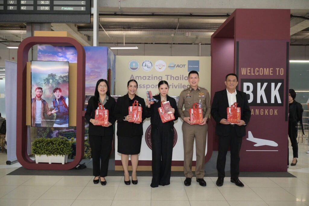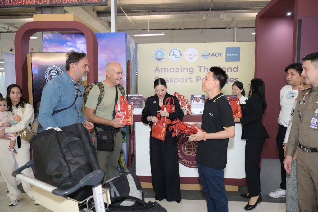 วันที่ 6 พฤศจิกายน 2568 กระทรวงการท่องเที่ยวและกีฬา โดยการท่องเที่ยวแห่งประเทศไทย นำโดยนายอรรถกร ศิริลัทธยากร รัฐมนตรีว่าการกระทรวงการท่องเที่ยวและกีฬา พร้อมด้วยนางสาวนัทรียา ทวีวงศ์ ปลัดกระทรวงการท่องเที่ยวและกีฬา และนางสาวฐาปนีย์ เกียรติไพบูลย์ ผู้ว่าการการท่องเที่ยวแห่งประเทศไทย ร่วมลงพื้นที่ตรวจเยี่ยมการดำเนินงานโครงการ “Amazing Thailand Passport Privileges” ณ ท่าอากาศยานสุวรรณภูมิ โดยมี นางประหนึ่งนุช บำเพ็ญสมัย ที่ปรึกษา 10 ฝ่ายบริการลูกค้า สายปฏิบัติการ 2 ท่าอากาศยานสุวรรณภูมิ และพลตำรวจตรี คธาธร คำเที่ยง ผู้บังคับการตรวจคนเข้าเมือง 2 ร่วมให้การต้อนรับนักท่องเที่ยวจากนานาประเทศ พร้อมมอบ “AMAZING BAG” ของขวัญแห่งความทรงจำที่สะท้อนอัตลักษณ์ไทย