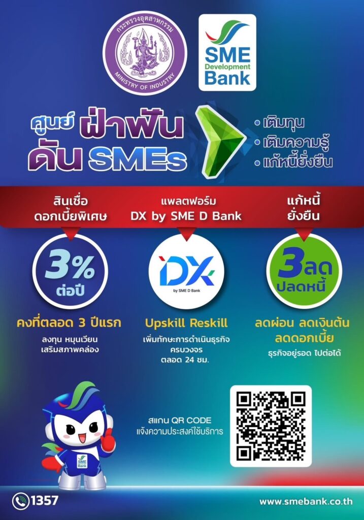 สำหรับ “ศูนย์ฝ่าฟัน ดัน SMEs” เกิดจากนโยบายของรัฐบาล โดยกระทรวงอุตสาหกรรม มอบนโยบายให้ SME D Bank ขับเคลื่อนให้ความช่วยเหลือแก่ผู้ประกอบการเอสเอ็มอีอย่างจริงจังและครบวงจร โดยมีบริการสำคัญ 3 ด้าน ได้แก่