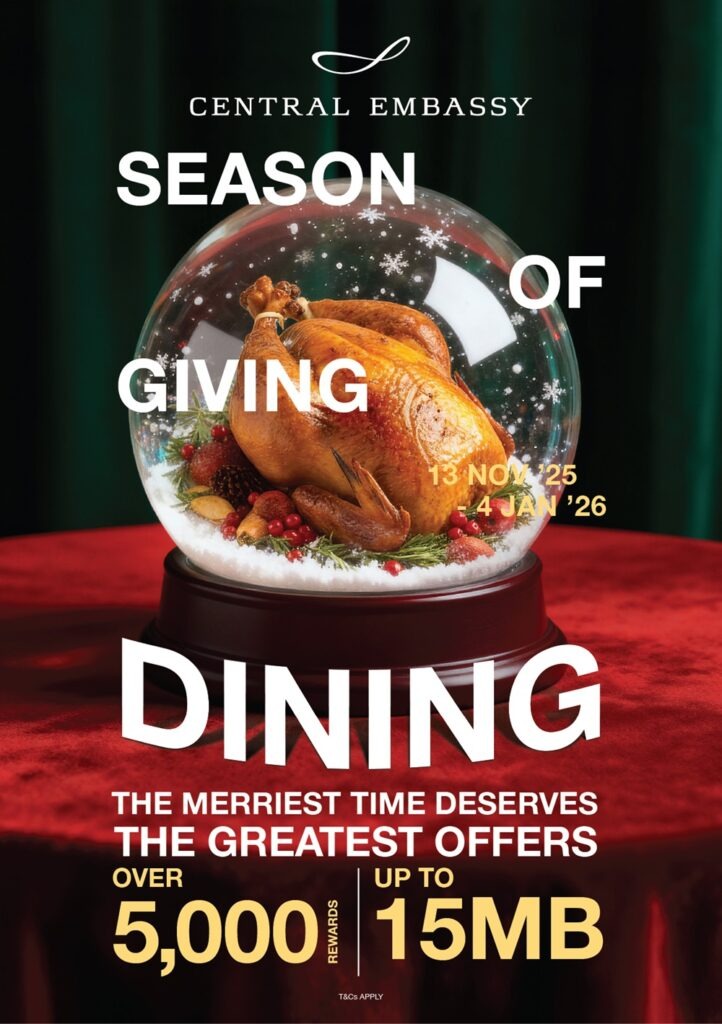 ศูนย์การค้าเซ็นทรัล เอ็มบาสซี เดินหน้ากระตุ้นบรรยากาศการจับจ่ายช่วงสิ้นปี จัดโปรโมชั่น “SEASON OF GIVING” ระหว่างวันที่ 13 พฤศจิกายน 2568 – 4 มกราคม 2569 ซึ่งเป็นส่วนหนึ่งของงาน “FUNNY LITTLE MESS: SEASON OF GIVING” พร้อมมอบรางวัลและสิทธิพิเศษมากมายจากทุกหมวดหมู่ไม่ว่าจะเป็น Luxury Fashion, Fashion & Lifestyle, และ Dining รวมมูลค่ากว่า 15 ล้านบาท โปรโมชั่นนี้ยังสะท้อนกลยุทธ์ของ เซ็นทรัล เอ็มบาสซี ในการขับเคลื่อนกำลังซื้อของลูกค้าทั้งในและต่างประเทศ พร้อมกระตุ้นการหมุนเวียนทางเศรษฐกิจในช่วงเทศกาลปีใหม่อีกด้วย