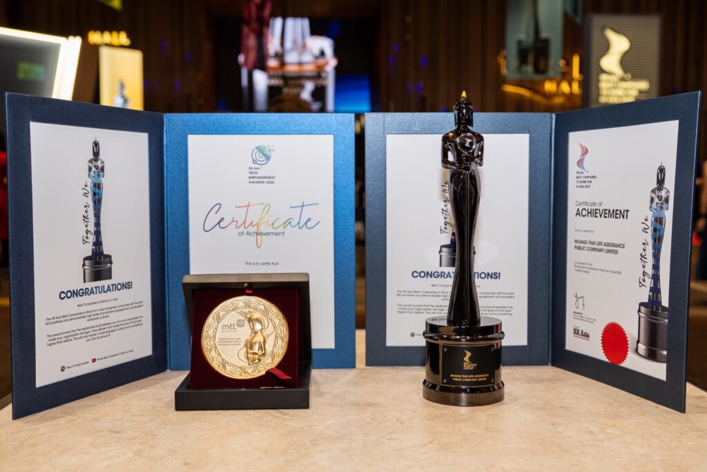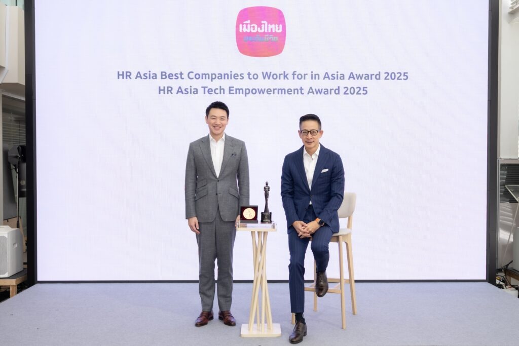 บริษัท เมืองไทยประกันชีวิต จำกัด (มหาชน) คว้า 2 รางวัลใหญ่ระดับสากล ด้านการบริหารทรัพยากรบุคคลและด้านการส่งเสริมการเรียนรู้และการใช้เทคโนโลยีภายในองค์กร ได้แก่ รางวัล “Best Companies to Work For in Asia 2025″ ที่ได้รับต่อเนื่องเป็นปีที่ 4 ตอกย้ำความเป็นองค์กรที่น่าทำงานที่สุดในเอเชีย และโดดเด่นด้านการบริหารทรัพยากรบุคคลอันเป็นเลิศ การสร้างสภาพแวดล้อมการทำงานที่เหมาะสม ยอมรับในคุณค่าของพนักงาน เน้นความสุขของพนักงานเป็นสำคัญ และรางวัล “Tech Empowerment” ซึ่งยกย่ององค์กรที่ใช้เทคโนโลยีสนับสนุนการพัฒนาองค์กรและยกระดับประสบการณ์การทำงานของพนักงานอย่างมีประสิทธิภาพ จากนิตยสาร HR Asia ซึ่งเป็นสื่อชั้นนำด้านทรัพยากรบุคคลในภูมิภาคเอเชีย โดยทั้งสองรางวัลสะท้อนให้เห็นถึงความมุ่งมั่นอย่างต่อเนื่องของเมืองไทยประกันชีวิตในการให้ความสำคัญกับการพัฒนาบุคลากร การสร้างสภาพแวดล้อมการทำงานที่มีคุณค่า รวมถึงการนำเทคโนโลยีมาประยุกต์ใช้เพื่อยกระดับการทำงานให้มีประสิทธิภาพมากยิ่งขึ้น