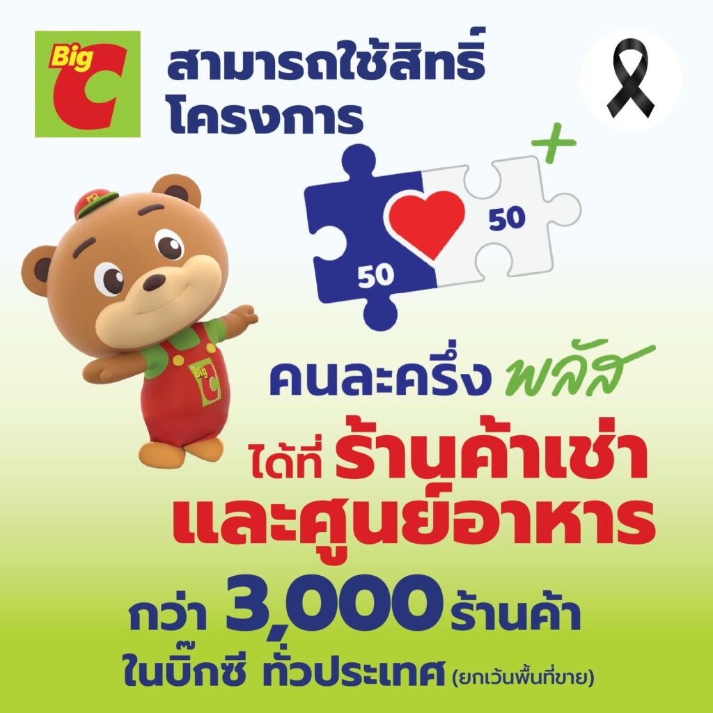 นอกจากนี้ บิ๊กซี ยังร่วมเป็นส่วนหนึ่งในการขับเคลื่อนเศรษฐกิจไทย ด้วยการเปิดพื้นที่ให้ลูกค้าสามารถใช้สิทธิ์โครงการ “คนละครึ่ง พลัส” ได้ที่ร้านค้าเช่าและศูนย์อาหารบิ๊กซีทั่วประเทศกว่า 3,000 ร้านค้า เพื่อให้อิ่มอร่อยและคุ้มค่ามากยิ่งขึ้น โดยสามารถสังเกตสัญลักษณ์หรือโลโก้ “คนละครึ่ง พลัส” ที่หน้าร้าน และชำระเงินได้ง่าย ๆ ผ่านแอปพลิเคชัน “เป๋าตัง” ซึ่งเป็นอีกหนึ่งทางเลือกที่ช่วยแบ่งเบาภาระค่าใช้จ่ายของประชาชน พร้อมทั้งสนับสนุนผู้ประกอบการรายย่อยให้เติบโตไปด้วยกัน โดยโครงการนี้เปิดให้ใช้สิทธิ์ได้ ตั้งแต่วันนี้ – 31 ธันวาคม 2568
