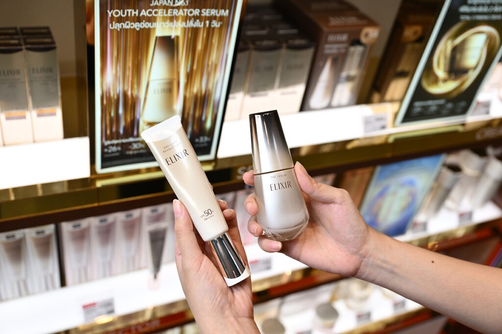 ทั้งนี้ ELIXIR เป็นแบรนด์ Skincare ที่โดดเด่นด้าน Anti-Aging ชั้นนำที่ประสบความสำเร็จอย่างต่อเนื่องในญี่ปุ่น ด้วยปรัชญาการดูแลผิวที่เน้นการทำงานร่วมกับ “คอลลาเจน” ภายในผิว เพื่อคงความยืดหยุ่นและอ่อนเยาว์ โดยมีผลิตภัณฑ์เด่นที่ได้รับความนิยม แบ่งเป็น 3 กลุ่มหลัก ได้แก่ ผลิตภัณฑ์ลดเลือนริ้วรอย (Anti-Aging), ผลิตภัณฑ์เพิ่มความกระจ่างใส (Brightening) และผลิตภัณฑ์ปรับสภาพผิวให้เรียบเนียนและกระชับรูขุมขน (Purifying & Smoothing) อาทิ ELIXIR The Serum เซรั่มเนื้อบางเบาที่จะช่วยปลุกผิวคุณให้แลดูอ่อนเยาว์เปล่งปลั่ง, ELIXIR Total V Firming Cream ครีมฟื้นบำรุงผิวให้แลดูอ่อนเยาว์ในทุกมิติ มาพร้อม TOTAL V-Technology และ ELIXIR Day Care Revolution SPF50+ PA++++ ผลิตภัณฑ์กันแดดพร้อมบำรุงผิวในขั้นตอนเดียวสูตรเฉพาะของแบรนด์ เพื่อการปกป้องผิวจากแสงแดดอย่างมีประสิทธิภาพ ที่ผสาน 3 คุณประโยชน์จากไพร์เมอร์ กันแดด และมอยส์เจอร์ไรเซอร์บำรุงผิวไว้อย่างลงตัว ซึ่งผลิตภัณฑ์ของ ELIXIR ได้รับการตอบรับที่ดีจากผู้บริโภคทั่วเอเชียในฐานะสกินแคร์ที่ให้ผลลัพธ์จริงในกลุ่ม Anti-Aging ระดับพรีเมียม