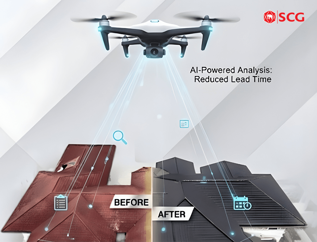 กลยุทธ์สำคัญอีกประการคือ การนำเทคโนโลยีมาใช้ในทุกมิติของกระบวนการผลิต ไม่ว่าจะเป็นการประยุกต์ใช้ IoT AI และระบบ Lean Automation เพื่อยกระดับประสิทธิภาพการผลิต ลดขั้นตอนซ้ำซ้อน และลดของเสียในโรงงาน รวมถึงการใช้ระบบ MES ช่วยบริหารการผลิตแบบ Real-time ทำให้สามารถผลิตได้มากขึ้นในเวลาน้อยลง พร้อมคุณภาพที่สม่ำเสมอและการใช้พลังงานอย่างคุ้มค่ามากขึ้น ซึ่งสอดคล้องกับเป้าหมาย Net Zero Emission ในระยะยาว รวมถึงการนำนวัตกรรม Drone Imaging และ AI มาใช้ตรวจวิเคราะห์หลังคา ช่วยลดเวลาทำงาน เพิ่มความปลอดภัย และให้ข้อมูลที่แม่นยำกว่าที่เคย
