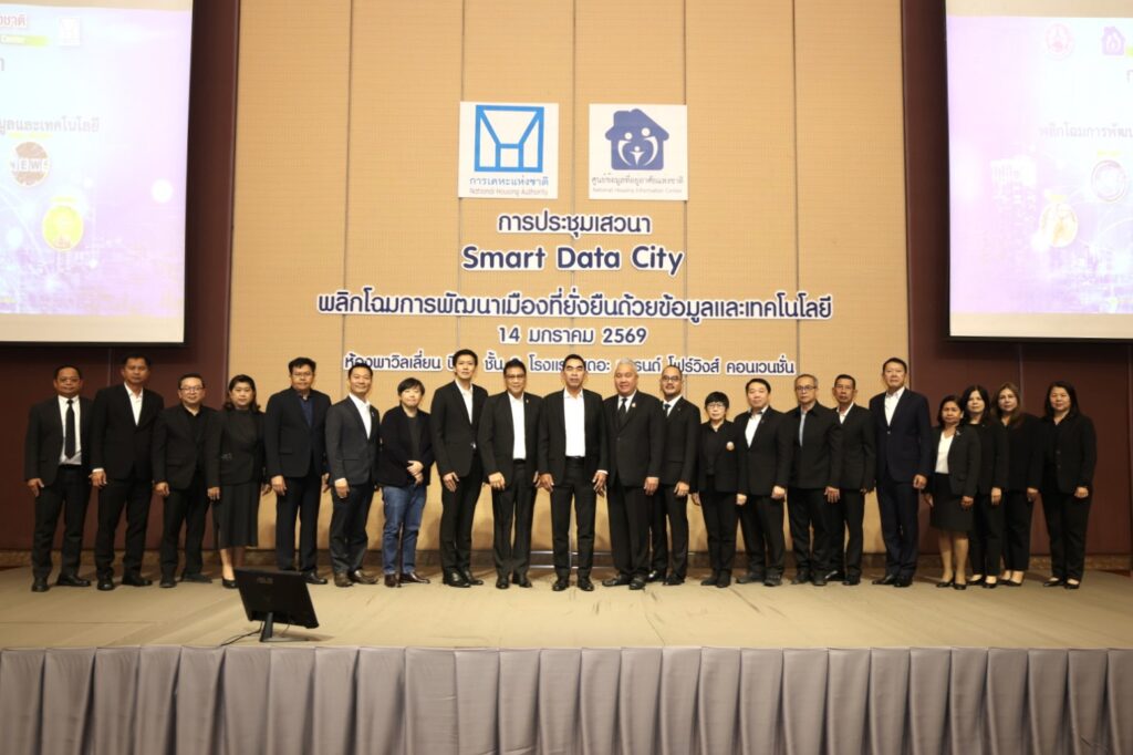 การเคหะแห่งชาติจัดเสวนา หัวข้อ “Smart Data City พลิกโฉมการพัฒนาเมืองที่ยั่งยืนด้วยข้อมูลและเทคโนโลยี” โดยมี พลเอก สุพจน์ มาลานิยม ประธานกรรมการการเคหะแห่งชาติ เป็นประธานเปิดงานและปาฐกถาพิเศษหัวข้อ “การเคหะแห่งชาติกับการพัฒนาที่อยู่อาศัยอย่างยั่งยืน” พร้อมด้วย ผศ.ดร. อำนาจ จำรัสจรุงผล กรรมการการเคหะแห่งชาติ ดร.สมิทธิ ดารากร ณ อยุธยา กรรมการผู้ทรงคุณวุฒิ ประธานคณะทำงานพัฒนาศูนย์ข้อมูลที่อยู่อาศัยแห่งชาติของการเคหะแห่งชาติ เป็นผู้นำเสวนาร่วมกับผู้ทรงคุณวุฒิจากองค์กรชั้นนำ ทั้งนี้ คณะกรรมการด้านการจัดการความรู้และนวัตกรรม นายทวีพงษ์ วิชัยดิษฐ ผู้ว่าการการเคหะแห่งชาติ ผู้บริหารการเคหะแห่งชาติ และหน่วยงานภาคีเครือข่ายที่เกี่ยวข้อง เข้าร่วมรับฟังการเสวนาในครั้งนี้ เมื่อวันที่ 14 มกราคม 2569 ณ โรงแรมเดอะ แกรนด์ โฟร์วิงส์ คอนเวนชั่น ศรีนครินทร์ กรุงเทพฯ