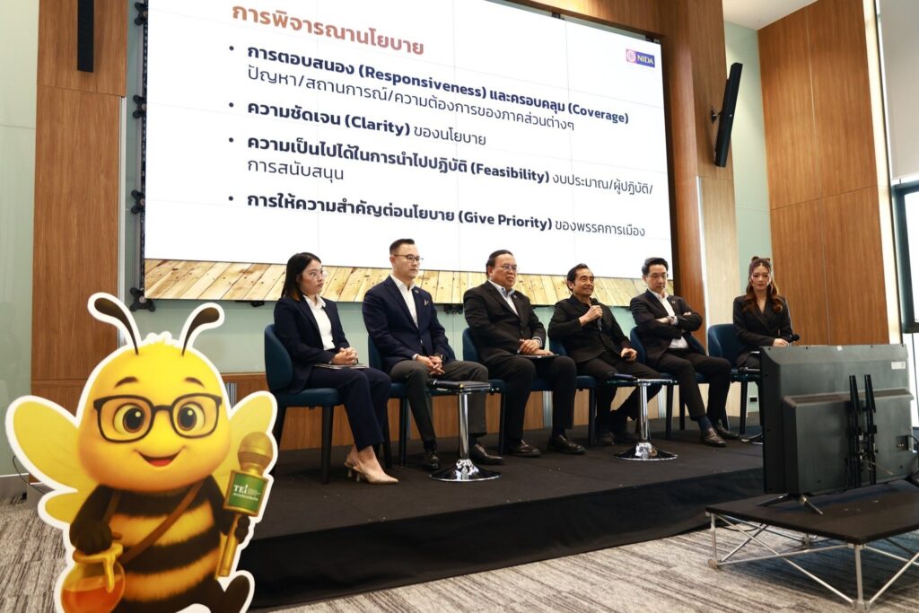“อย่างไรก็ตาม ภาพรวมนโยบายของพรรคการเมืองสะท้อนให้เห็นว่า ประเด็นด้านสิ่งแวดล้อมและ การเปลี่ยนแปลงสภาพภูมิอากาศได้ถูกบรรจุเป็นส่วนหนึ่งของการกำหนดนโยบายการพัฒนาประเทศ ซึ่งแนวทาง กลไก และระดับความชัดเจนในการดำเนินการยังมีความแตกต่างกันในแต่ละพรรค โดย TEI มุ่งขับเคลื่อนและส่งต่อองค์ความรู้ด้าน การปรับตัวต่อการเปลี่ยนแปลงสภาพภูมิอากาศ (Climate Adaptation) โดยใช้ข้อมูลวิทยาศาสตร์ ความเห็นของผู้มีส่วนได้ส่วนเสีย และประสบการณ์จากพื้นที่เป็นฐาน เพื่อสนับสนุนนโยบายและการปฏิบัติที่ช่วยให้สังคมไทย ภายใต้แนวคิดปรับ (นโยบาย) – เปลี่ยน (พฤติกรรม) – ปลอด (ปลอดภัยจากวิกฤตสิ่งแวดล้อม) เพื่อให้สามารถรับมือความเสี่ยงจากโลกร้อน มลพิษ และภัยพิบัติได้อย่างเป็นรูปธรรม ลดผลกระทบต่อประชาชนและระบบนิเวศในระยะยาว” ดร.วิจารย์ กล่าวทิ้งท้าย