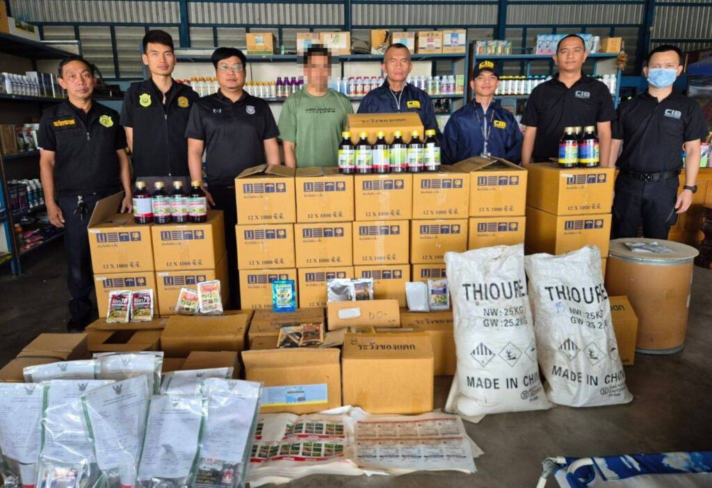 ทั้งนี้ เมื่อวันที่ 29 มกราคม 2569 เจ้าหน้าที่สารวัตรเกษตร กรมวิชาการเกษตร ร่วมกับเจ้าหน้าที่ตำรวจสอบสวนกลาง เข้าตรวจค้นและจับกุมร้านค้าออนไลน์แห่งหนึ่งในพื้นที่อำเภอศรีประจันต์ จังหวัดสุพรรณบุรี หลังสืบทราบว่ามีการลักลอบจำหน่ายวัตถุอันตรายทางการเกษตรชนิดที่ 3 ซึ่งเป็นวัตถุอันตราย ที่กฎหมายกำหนดให้ต้องขึ้นทะเบียนและได้รับอนุญาตก่อนจำหน่าย ตามพระราชบัญญัติวัตถุอันตราย พ.ศ. 2535 และที่แก้ไขเพิ่มเติม